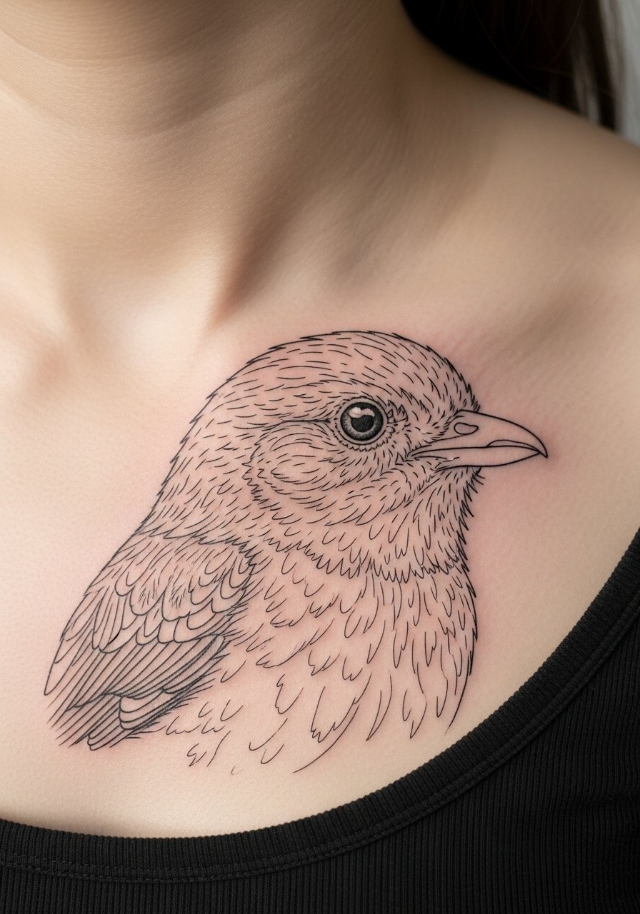 A fine line animal portrait on the collarbone reads intimate and symbolic. Collarbone placement looks elegant in photos and is a gentle way to carry favorite wildlife. Pain is moderate because the bone is near the surface, but sessions are short. Healing requires avoiding tight straps that can rub the area. Many people ask for extreme detail at small sizes—my advice is to keep portraits simplified so the key features remain readable as the piece ages. Ask for healed examples of small animal portraits on collarbones to ensure the artist spaces lines appropriately.