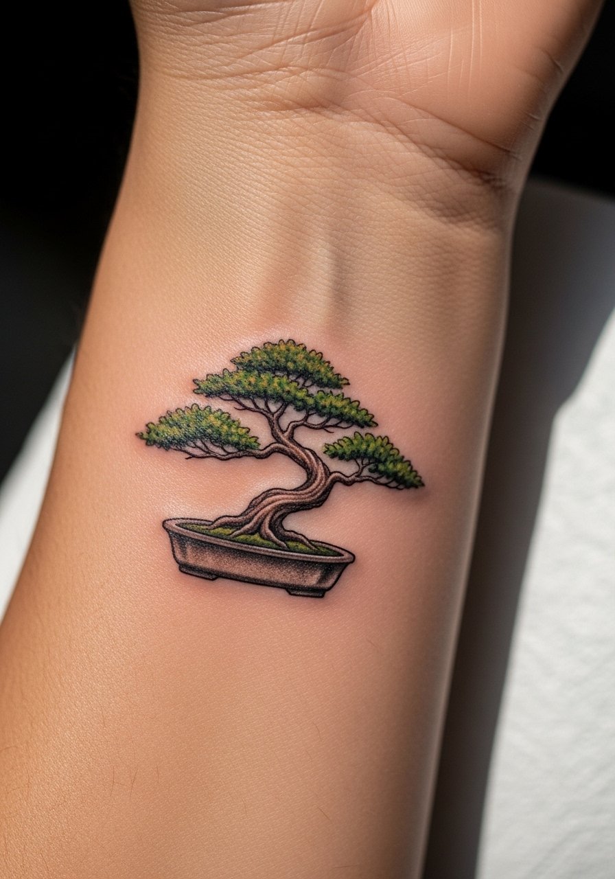A bonsai on the inner wrist carries meaning about care and patience. Micro-realism excels here but demands an artist skilled in tiny value shifts. The inner wrist is modestly sensitive; expect short sessions. Healing needs protection from frequent movement and friction—avoid tight bracelets for the first few weeks. A common misstep is wanting extreme texture in a tiny space; instead, prioritize silhouette and a few tonal cues. Artists specializing in micro-realism can show how bonsai looks after a year.