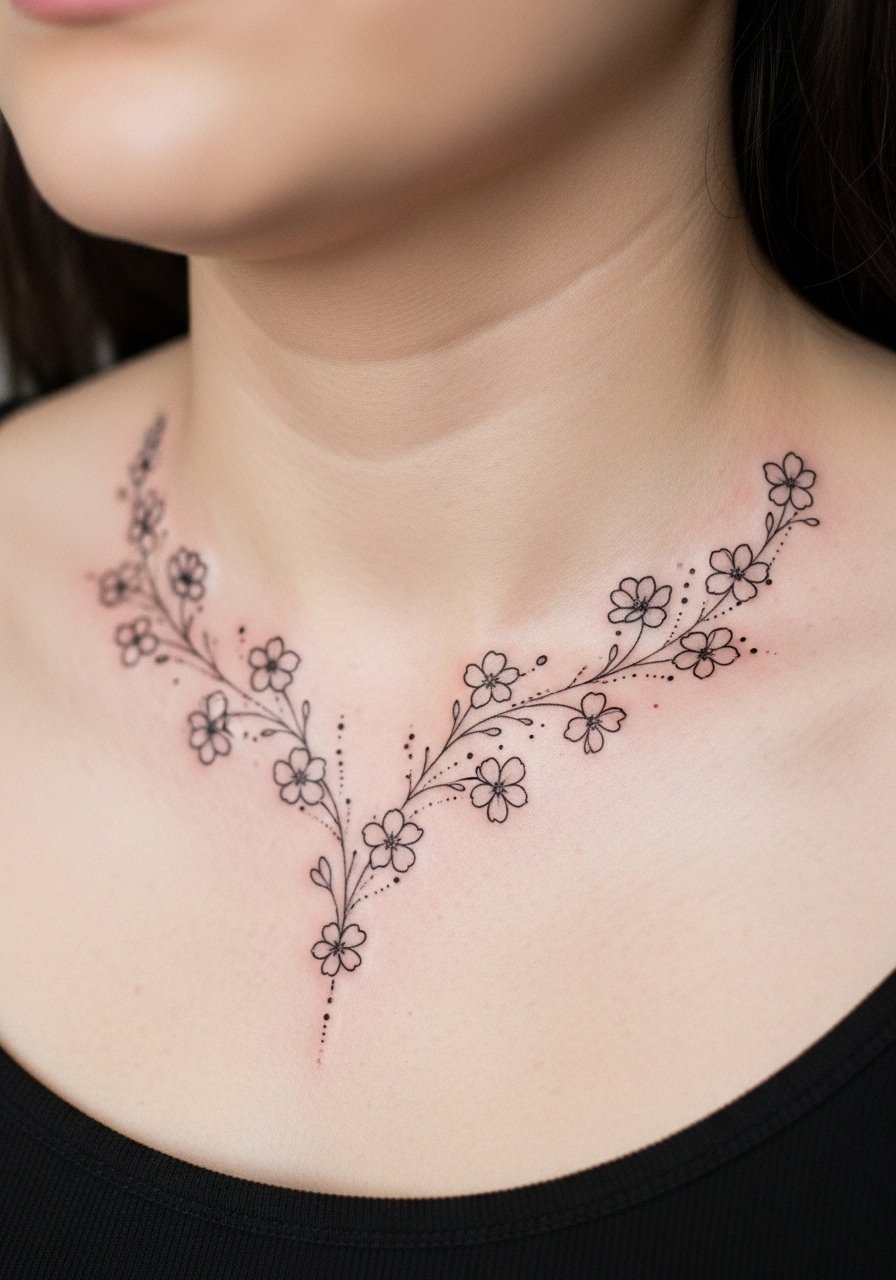 A constellation of florals along the collarbone feels airy and intentional. The collarbone photographs beautifully but needs care with clothing and straps during healing. Dotwork anchors and tiny flowers require precise spacing—too dense and they fuse. From what I’ve gathered, artists who do delicate dotwork and fine line nature tattoos can show healed examples that guide spacing and density decisions.
