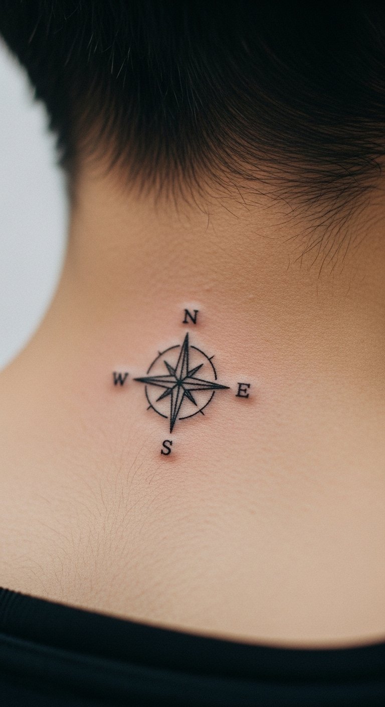 A compact compass is symbolic and practical for neck placement. Keep secondary details minimal so the piece ages clean. Ask for slightly thicker line weight for long-term clarity.