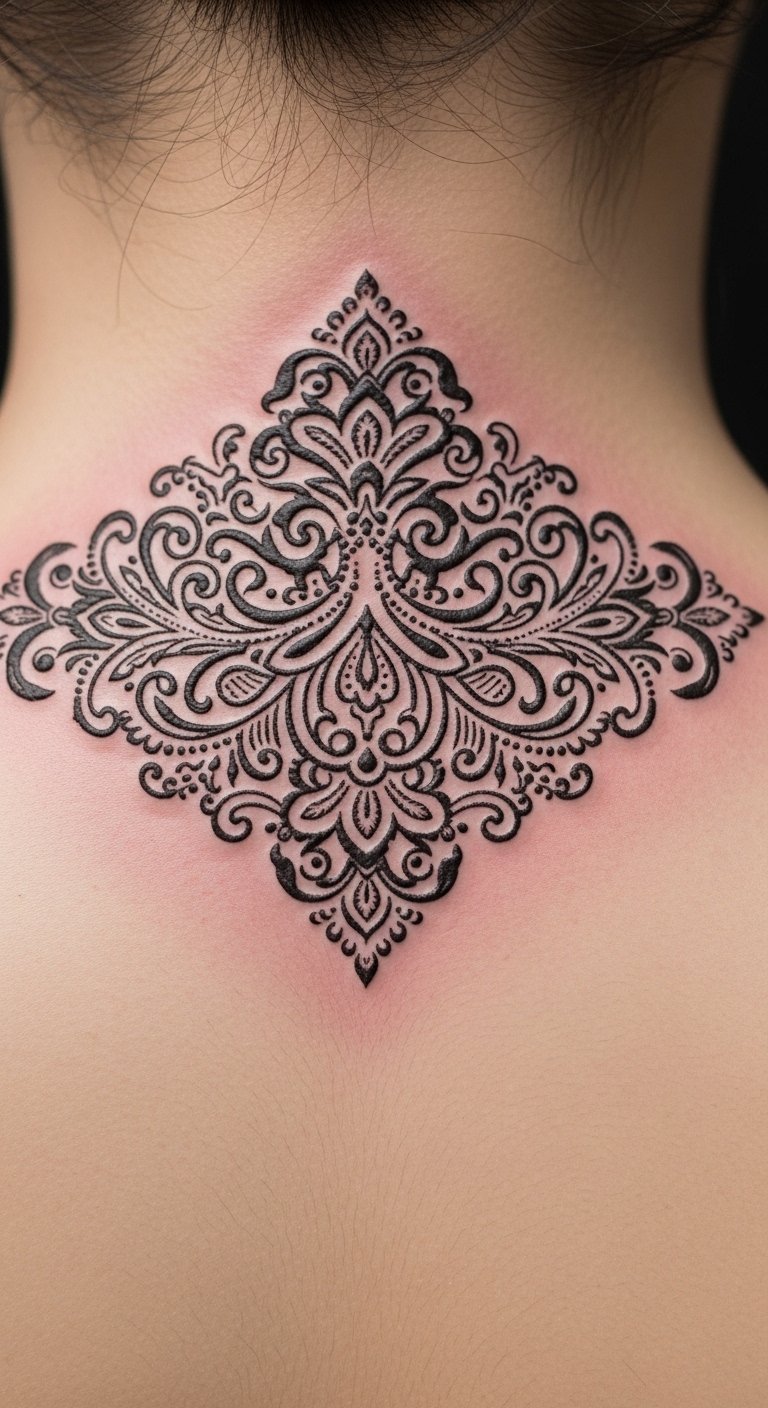 Mandala dotwork suits the nape’s flat canvas. It feels meditative and holds if dots are spaced correctly. Pain is manageable. Healing requires keeping the area clean to avoid dots blurring. A common mistake is over-compressing dots—ask the artist to map negative space intentionally.