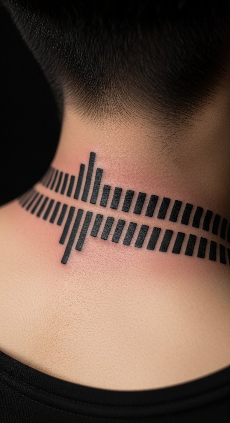 Barcode-Like Soundwave On Side Neck