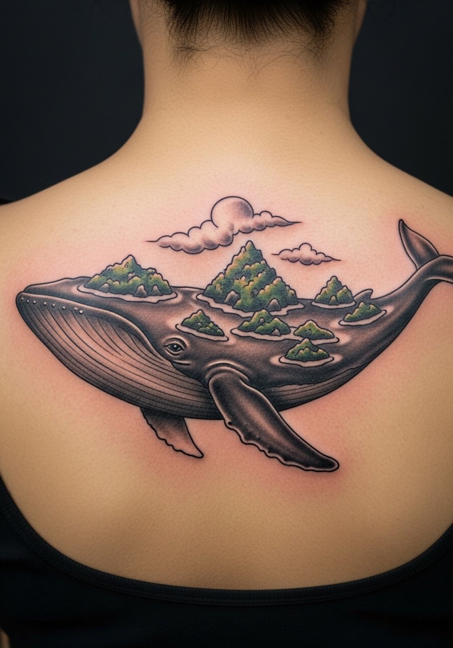 A large surreal whale makes your back feel like a moving ocean. Upper back is a great canvas with moderate pain. Plan sessions for shading and contour. I’ve seen surreal back pieces age well when the artist prioritizes strong contrast. Don’t crowd the whale with too many tiny islands—balance matters. Related terms: surreal ocean, whale portrait, back panel.