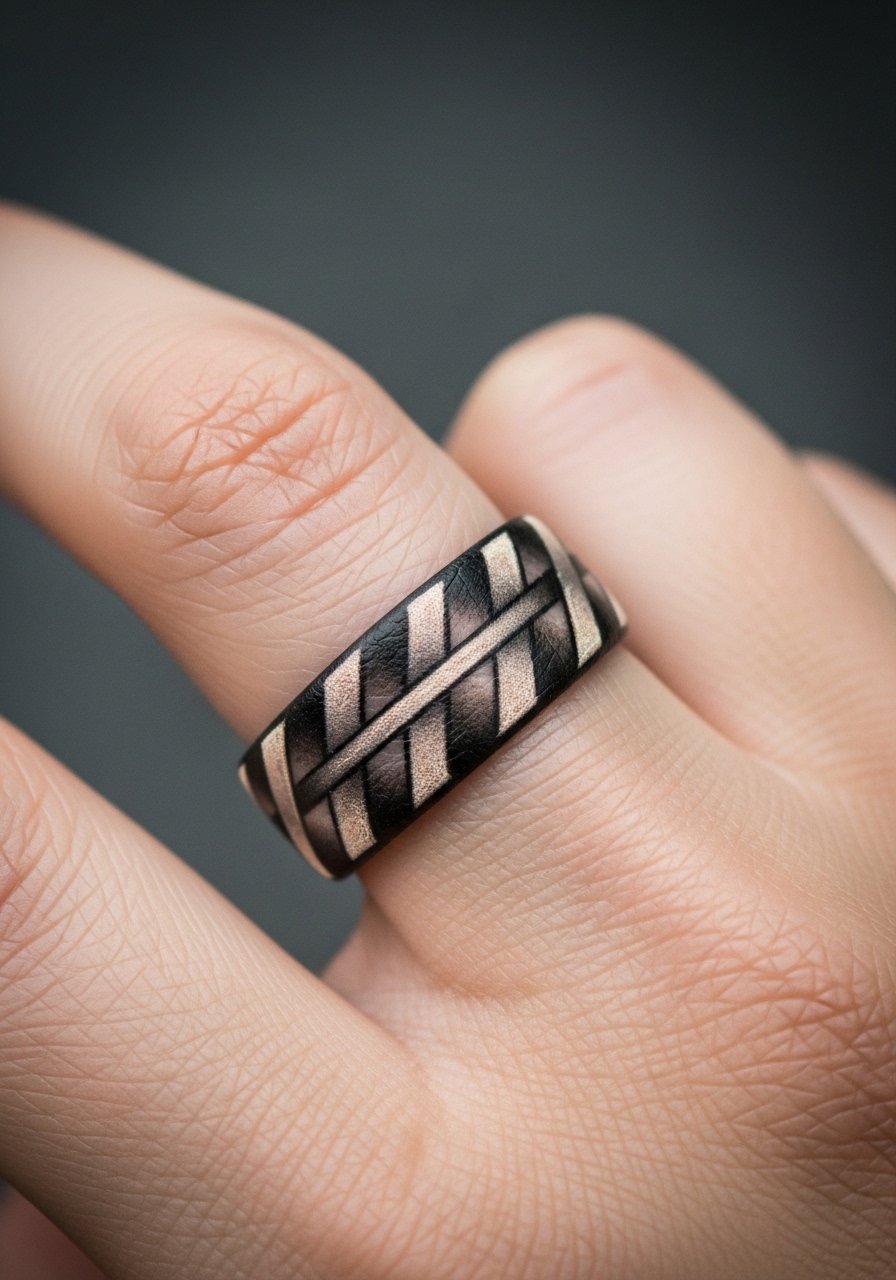 An optical ring uses warped perspective so the band reads three-dimensional from a certain angle. Fingers are painful and prone to fading since skin regenerates fast and is washed often. Expect touch-ups after healing. The result is striking—people often ask if it’s real. Avoid super thin lines; hands need sturdier work to hold. Artists who do fine blackwork and geometric anamorphic pieces are ideal—ask for healed hand examples.