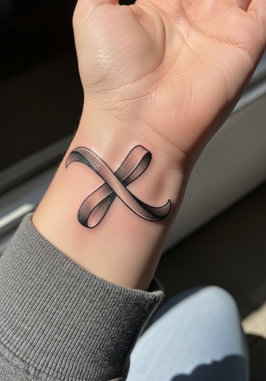 A Möbius strip wraps visually into itself and reads cool on the wrist. Because wrists move and wash frequently, expect some softening at edges—thicker line choices last longer. Healing is straightforward but plan for a potential touch-up. The effect is minimalist yet clever; don't over-detail it. Ask for geometric artists comfortable with symmetric healed work.