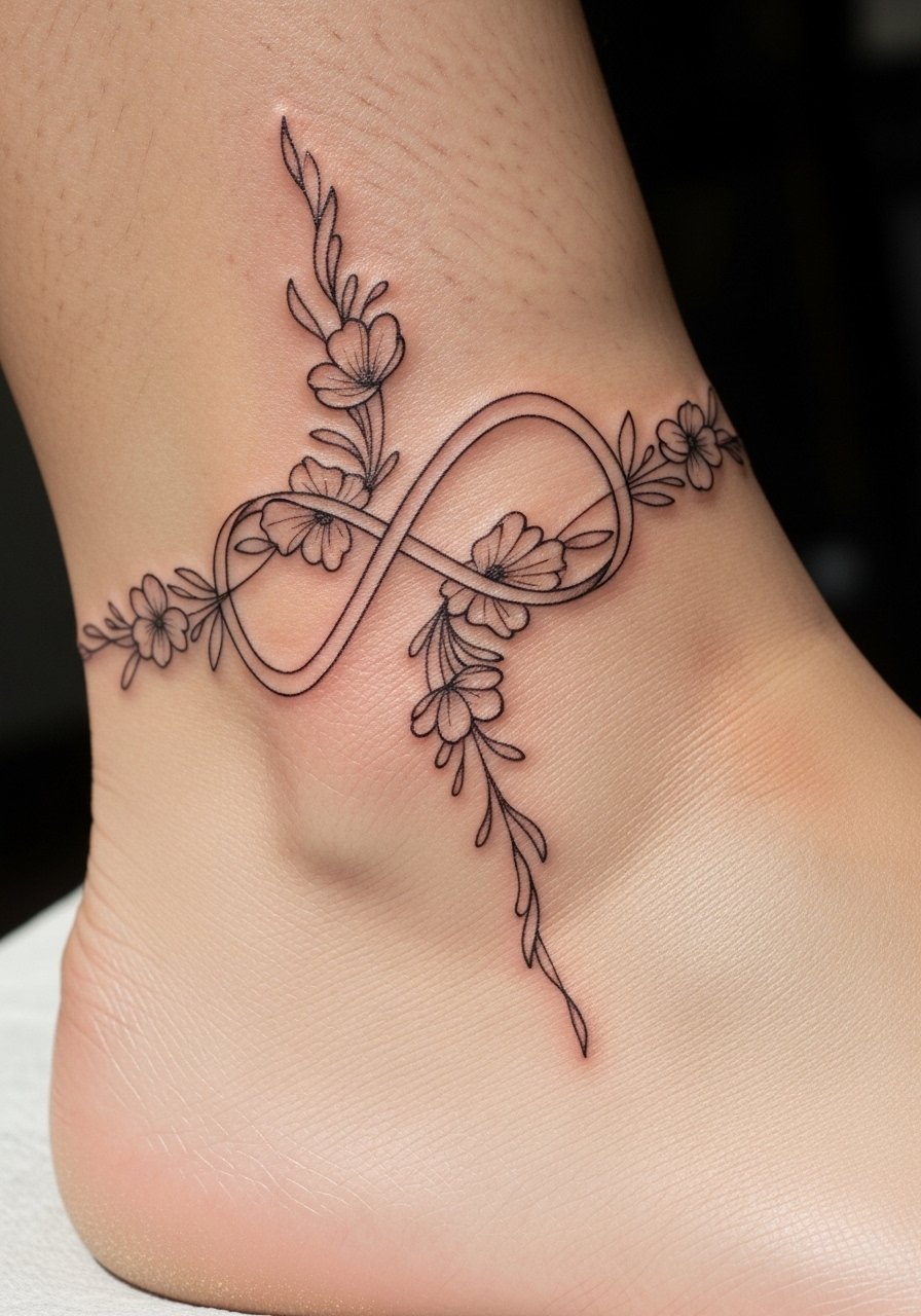 Combining botanical lines with a Möbius twist gives movement. Ankle specifics mean minor fading but good visual payoff. Healed lines must be bold enough to survive friction. Artists who blend fine line with body-wrapping compositions produce the best results. Avoid ultra-fine tendrils that disappear.