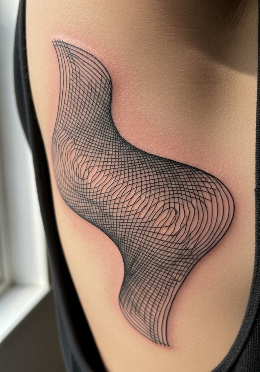 Moiré patterns on the ribs create motion that feels almost kinetic. Ribs are painful and require careful placement to ensure the pattern reads correctly when the body moves. Healed results can show slight softening, so line spacing must be intentional. Artists who do op art and large blackwork can show you healed moiré examples. Avoid overly tight line density that blurs during healing.