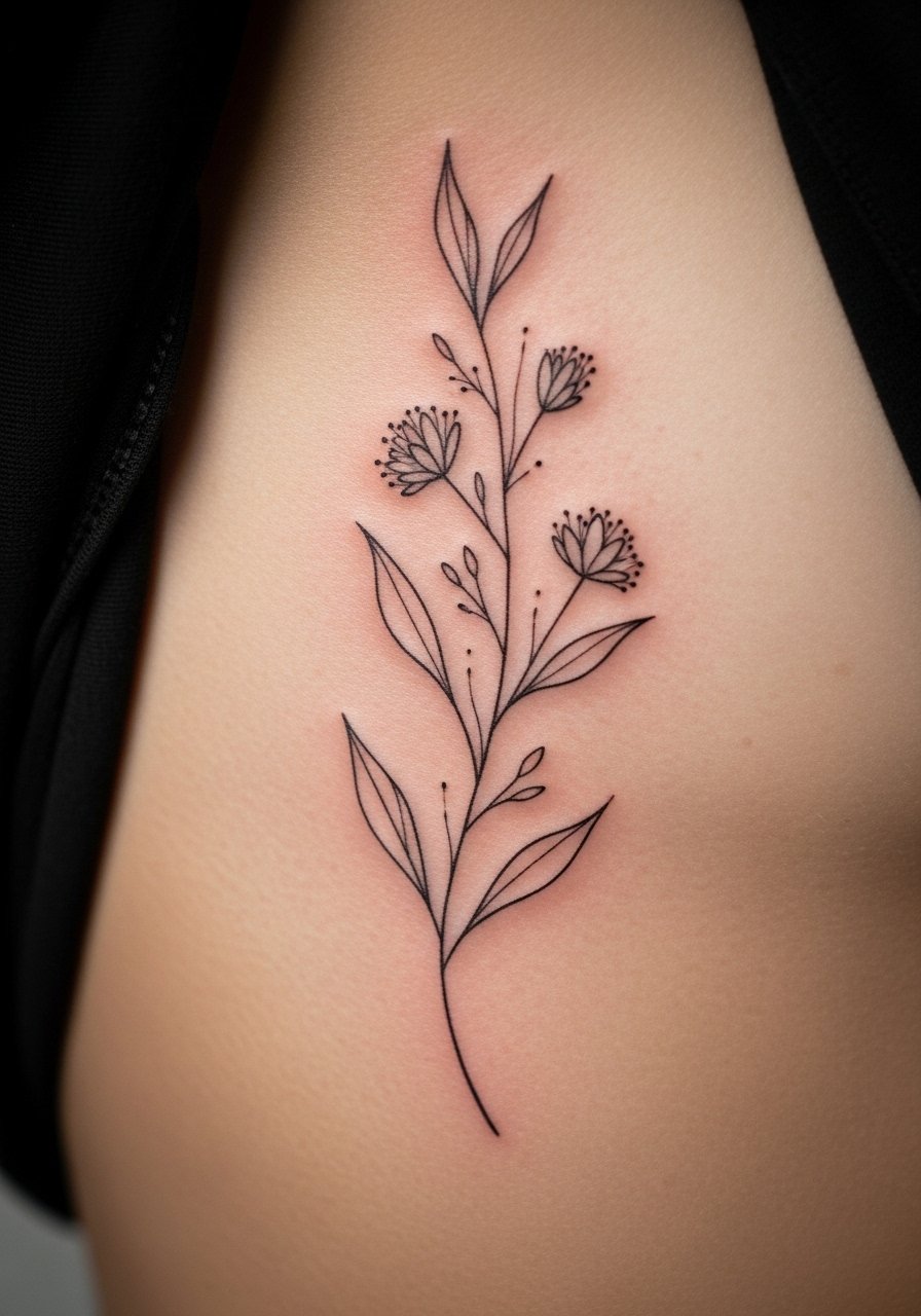 I first noticed this style on a friend who wanted something delicate that whispers, not shouts. Fine line botanical panels follow the rib curve and look elegant under a fitted shirt. Expect a higher pain level because the needle travels along bone edges and the session can be split into two shorter sittings. Ask for slightly thicker main stems during your consultation so the piece still reads at one year. A common mistake is going too tiny with foliage. Tiny leaves blur faster on the ribs than on fleshy areas. In my experience, light touch and ink saturation that is not “paper thin” will age better. Healing usually shows crisp lines at six months and gentle softening by two years.