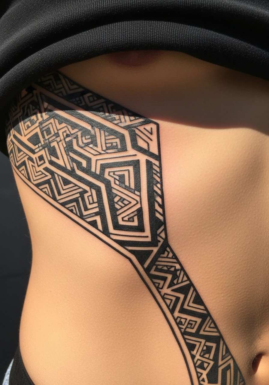 I started seeing geometric shapes that interact with breathing. The ribs are perfect for designs that elongate when you inhale. Pain comes in waves depending on placement. Ask your artist to test the stencil on your body while you breathe to confirm flow. The typical mistake is ignoring natural body movement. If shapes clash with ribs, they warp as you move. At six months edges remain crisp if spacing was generous. This style works if you want an architectural feel and plan your design to move with the body.