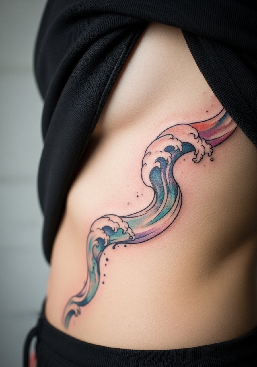 I used watercolor accents to suggest motion along my rib line. Pain feels sharp when the needle crosses ribs. Watercolor stains work visually, but they can fade faster than solid color. If you like this look, ask your artist to anchor the piece with subtle linework or a thin black outline so the design keeps shape as pigments soften. A mistake many make is asking for pure watercolor with no structure. At six months the color will be dreamy. By two years expect some bleeding unless you use long-term balm and daily SPF. This is for someone who likes painterly pieces and will commit to maintenance.