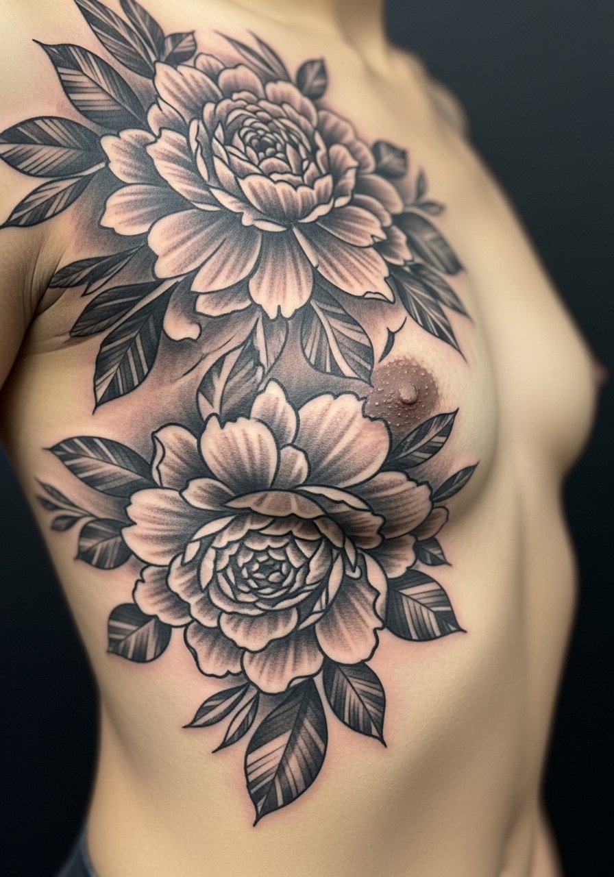 When I wanted a moody piece, black and gray florals felt right. Shading on the ribs heals differently than on meatier parts. The session may cause more scabbing because of shading density. Ask for softer gradients and less saturated midtones to avoid thick scabs. A common mistake is requesting heavy black shadows that pool. At six months flowers look soft and dimensional. At two years fine shading may blur slightly, but good contrast keeps the piece readable. This style suits someone who likes subtle drama.