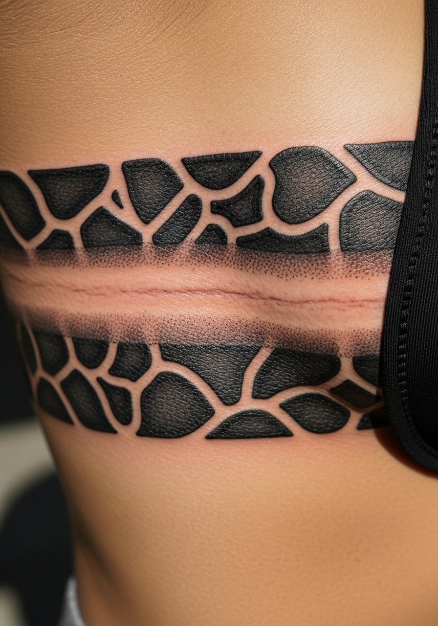 18. Scar-Cover Rib Tattoo With Organic Shapes