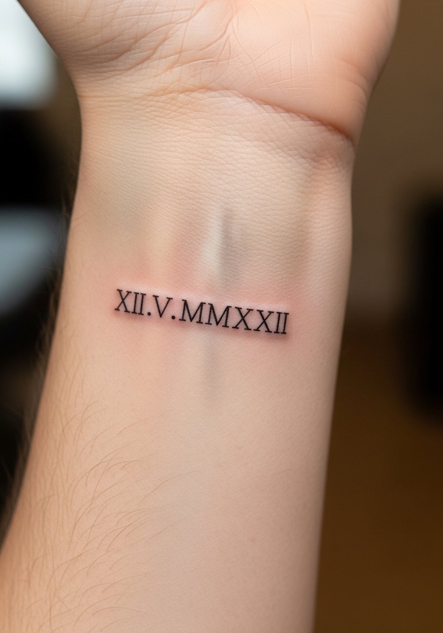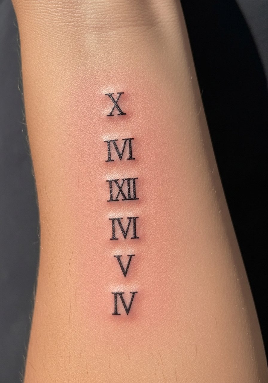 I spent months staring at calendars before I realized the trick with Roman numeral tattoos: the date itself is simple — the choice that matters is style, size, and placement so it still reads clearly years from now. These 28 Roman numeral ideas are designs I researched, tested in my head, and saw healed on real people.