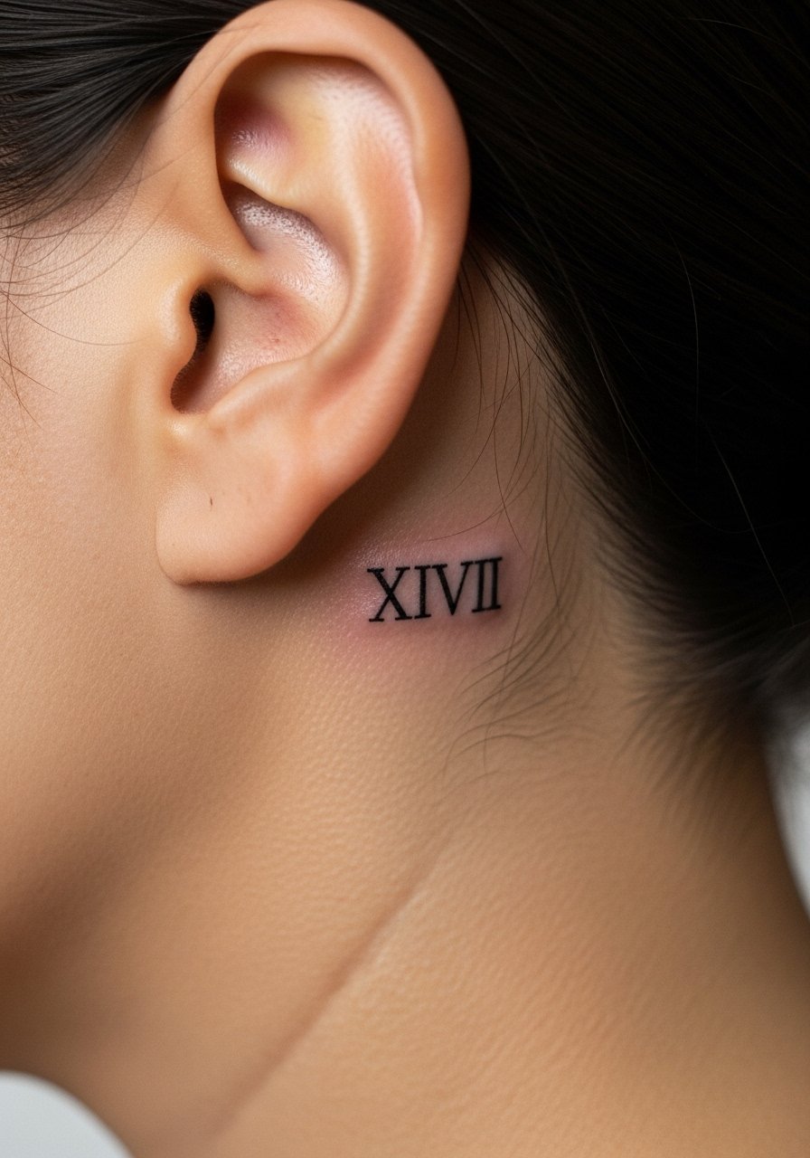 I considered this to mark a private date. Behind-ear tattoos are low pain but risk early fading from sun and shampoo. Heals quickly. Avoid overly tiny numerals — detail can merge. Ask for simple block numerals and plan touch-ups if you want it crisp long-term.