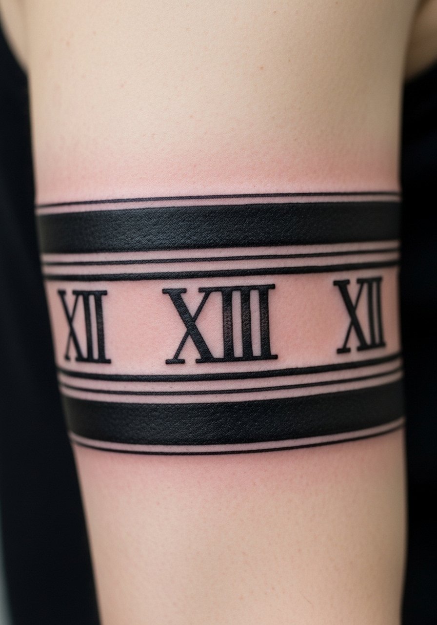 Bold Blackwork Roman Numeral Band on Upper Arm
