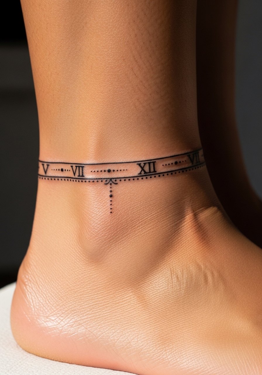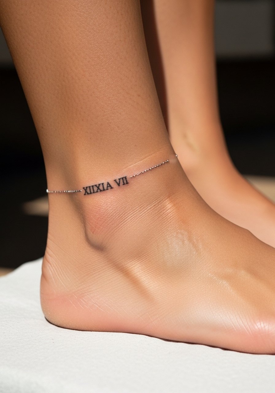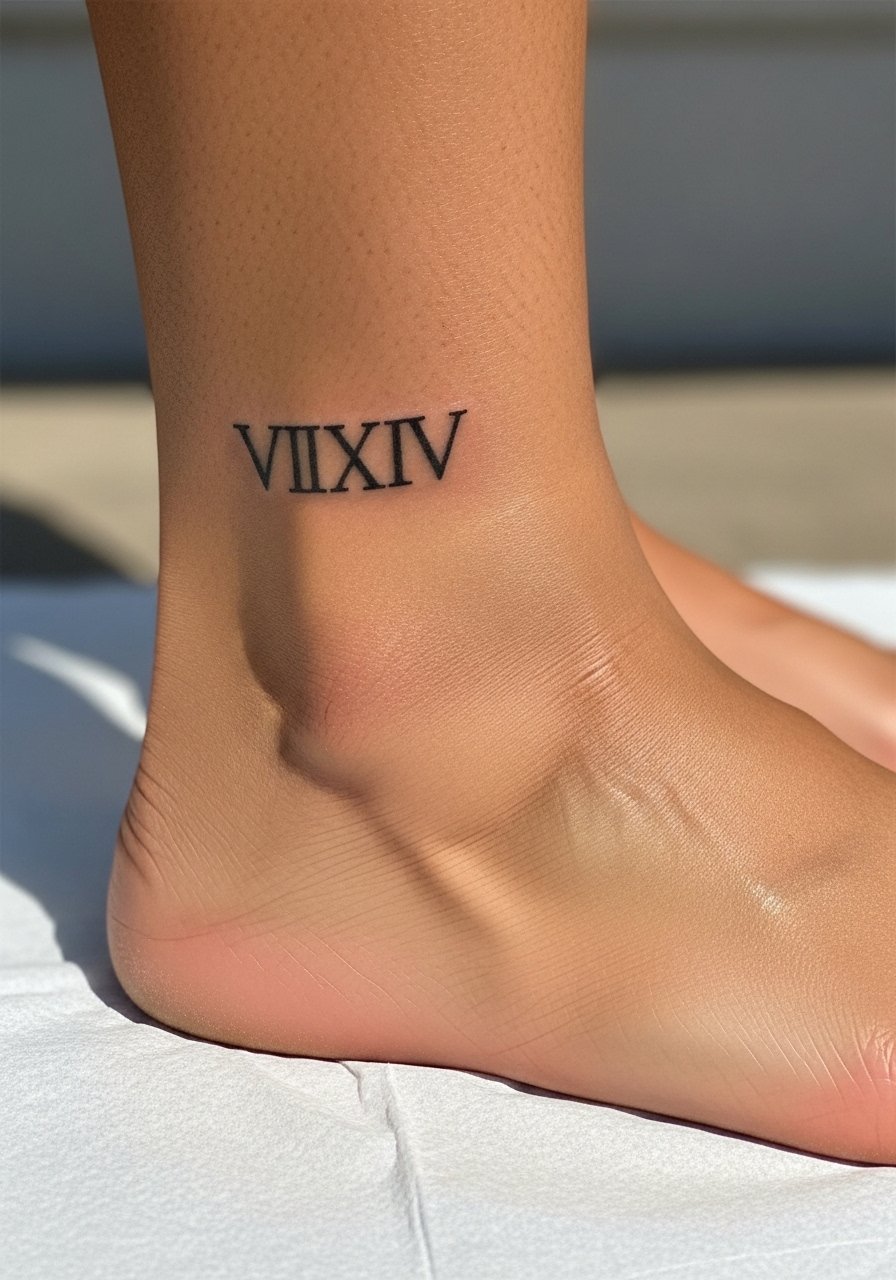 I liked this for travel dates. Ankles can be tricky — healing can catch on socks and shoes. Numerals should be spaced cleanly; tiny numerals can blur with movement. Healing: keep dry and clean to avoid scabbing.