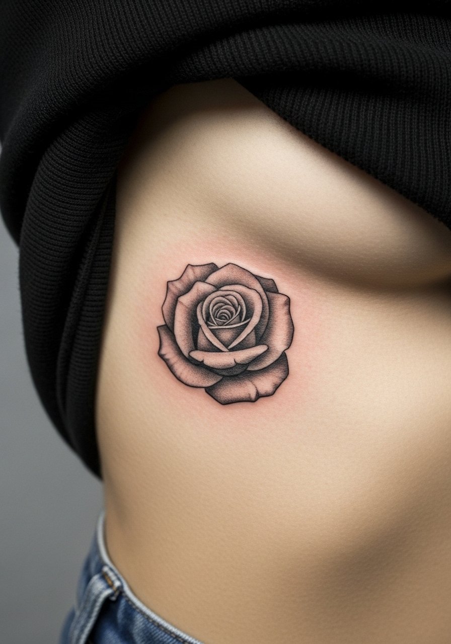 Pain on the ribs is high, but a single black and grey rose can be elegant and timeless. I got one there and the shading felt like a long scraping sensation. Expect two to three hour sessions for a medium piece. Black and grey ages well because it relies on contrast rather than color, but watch for heavy grey wash in small areas. Many people request dense grey gradients that later look muddy. Ask your artist to preserve negative space and to use crisp transitions. At six months the shading will have softened. At two years you might only need a light touch-up to restore contrast.