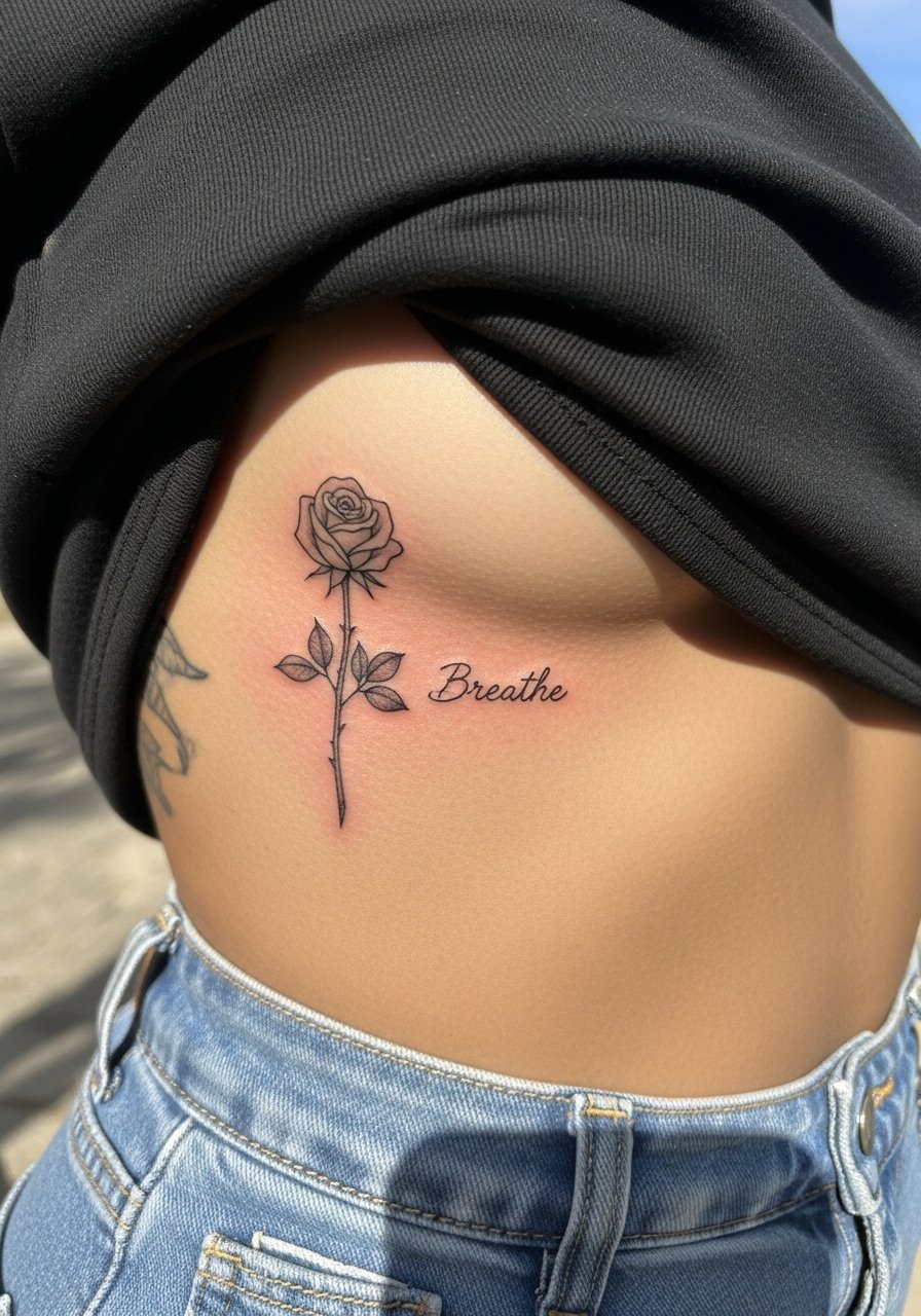 I got a ribcage rose with a short word and the script tested my patience. Ribcage lettering needs scale. Tiny script will blur. Pain is significant here. Sessions run one to two hours for a small piece. Healed at six months, the script softened. At two years, the word can become less legible if lines were too thin. When you consult, show the artist the exact word and font size. Ask for slightly bolder letter forms and request a healed sample of similar text on skin. Keep the phrase short, like "Breathe" or a name.