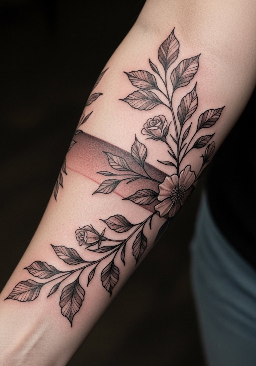 A: From what I've seen, fine line florals can blur when packed tightly. If you want a sleeve, tell your artist to vary line weight and include negative space. Ask them to scale individual roses so larger blooms anchor the design and small ones act as filler. You can also ask for occasional darker accents to preserve contrast. For aftercare try CeraVe Fragrance-Free Moisturizing Lotion, 12 oz pump during the second week to keep edges soft, not muddy.