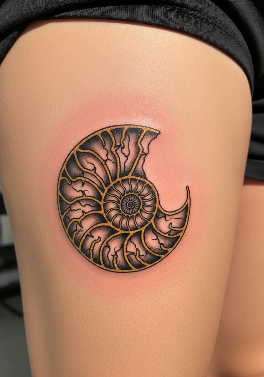 5. Golden Spiral Nautilus On Outer Thigh