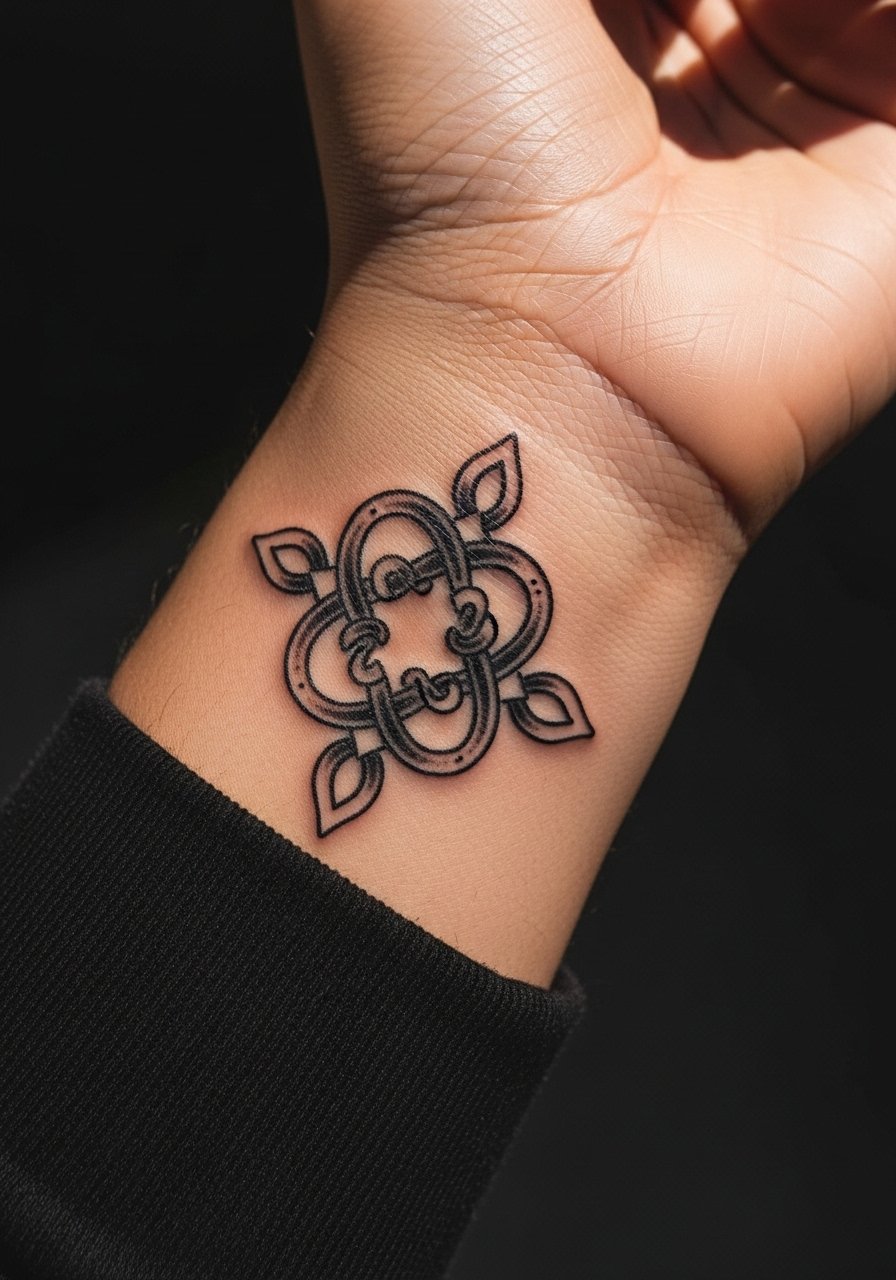 14. Micro Sacred Knot Handpoke On Wrist