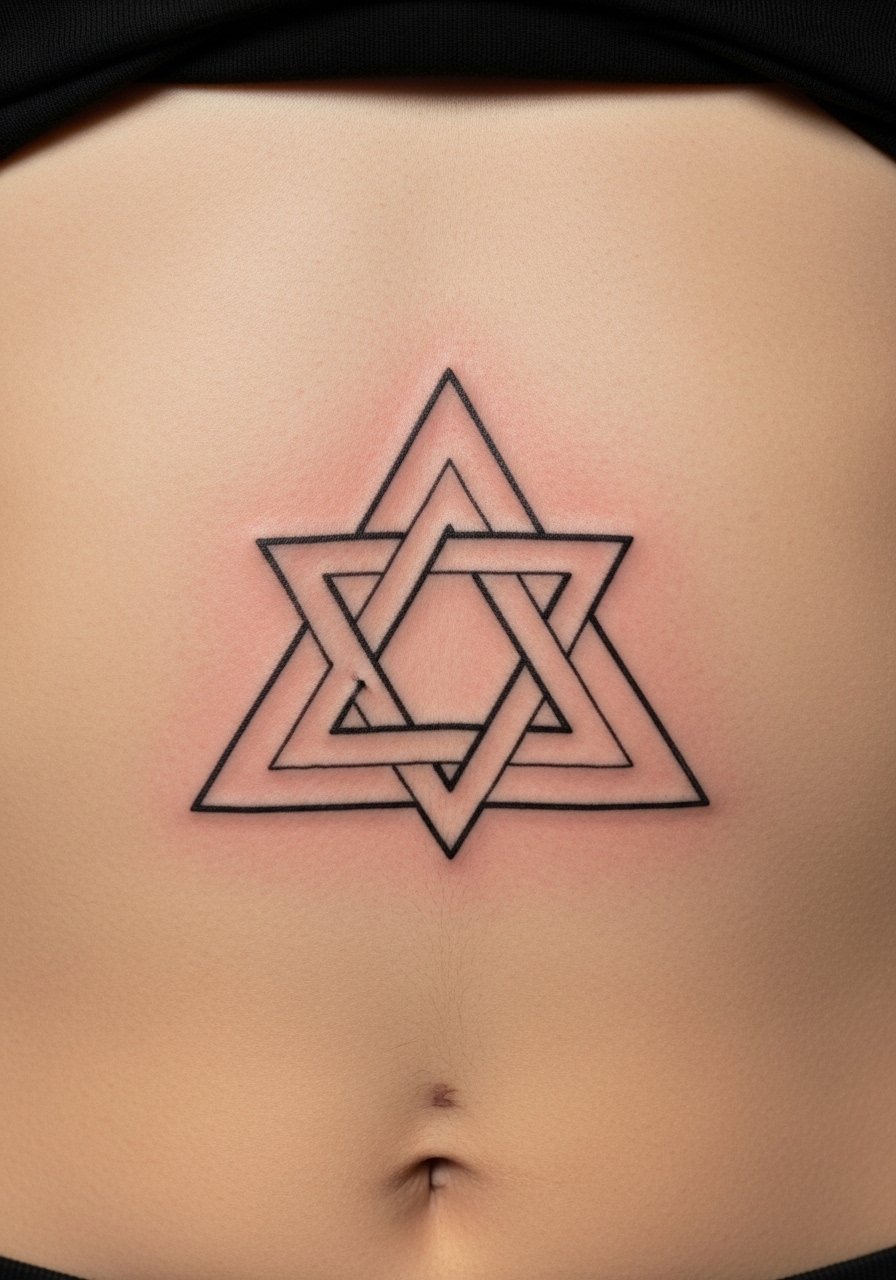 Interlocking triangles are compact but symbolic. The sternum draws attention and needs perfect alignment. Expect soreness and a careful aftercare window. For age resistance, ask for slightly reinforced line weight; razor-thin triangles can blur together over time. Ask to see healed sternum examples from your artist.