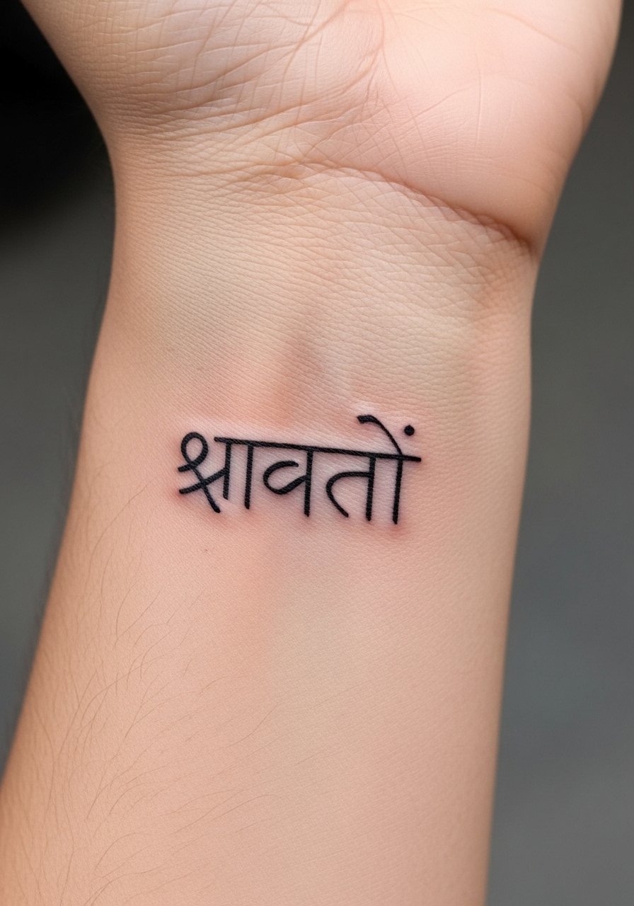 Fair warning, the inner wrist is sensitive. A "शान्ति" tattoo there takes about 20 to 30 minutes and feels like a sharp vibration. I recommend a single-session fine line approach. Tell your artist you want the spacing open between characters so the letters do not bleed into each other as the skin settles. From what I’ve seen, people who request cramped lettering regret it at six months. For aftercare, I use Aquaphor at night for the first few days. I’ve linked a staple product in the aftercare section. This placement reads calm and is easy to cover with a watch.
