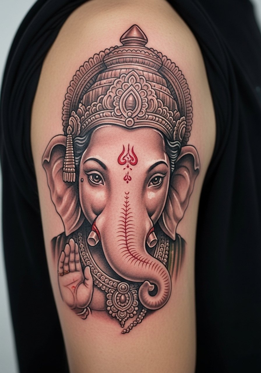 I came across this style at a studio that specializes in portraits. Micro-realism on the upper arm is forgiving and low to moderate on pain. Sessions often run one to three hours. Tell your artist you want softer contrast and deliberate highlights so the deity’s features remain readable after two years. From what I’ve observed, over-contrasted micro-realism fades into blotches if the highlights are missing. A mistake I see is shrinking a detailed portrait to fit a small wrist. Keep this on the arm for clarity. It reads like a devotional piece and ages like a photograph on skin.