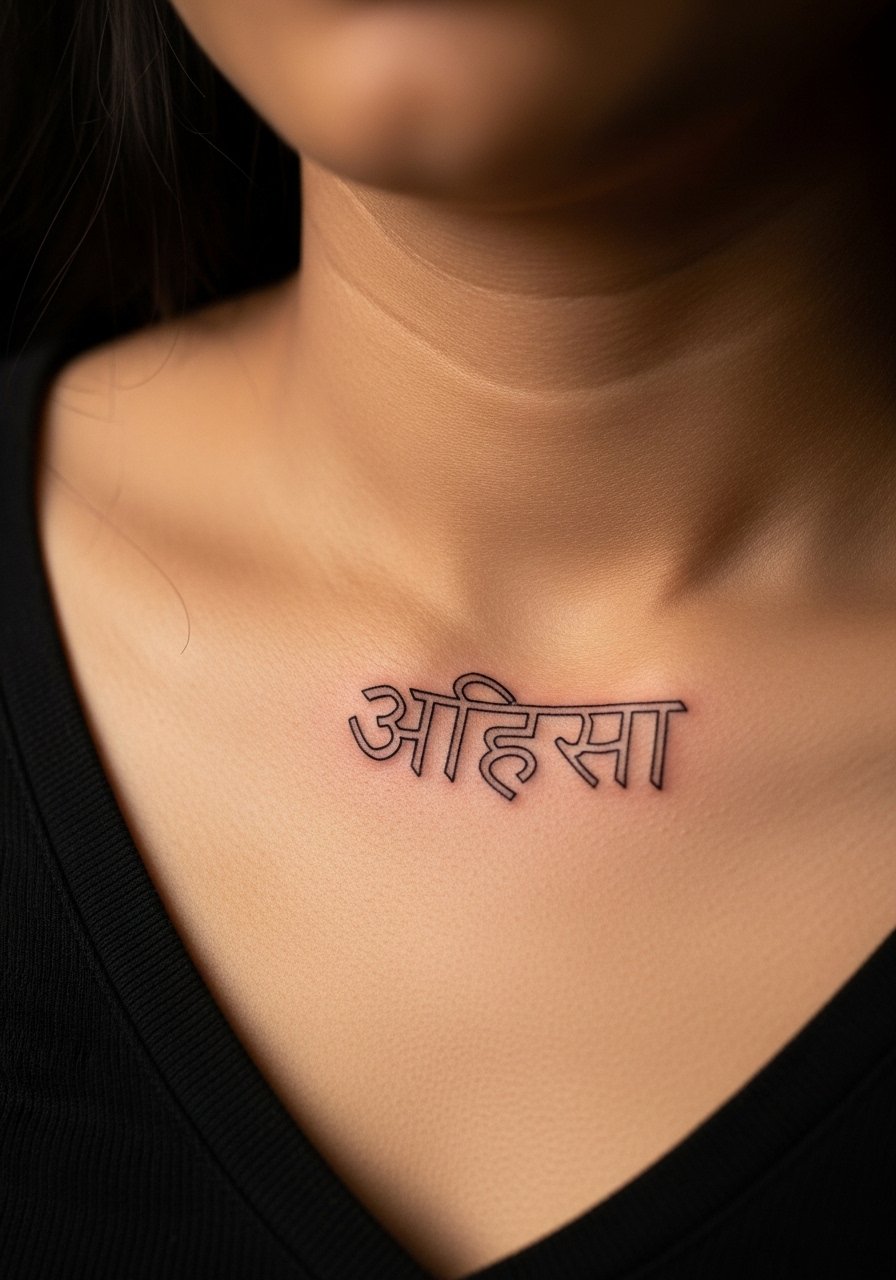 6. Fine Line "अहिंसा" Collarbone