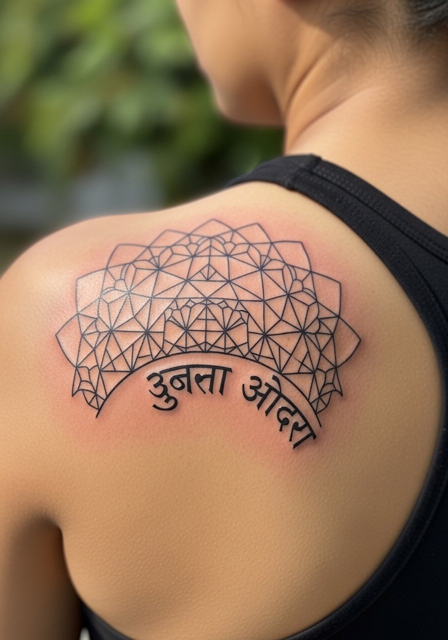 7. Geometric Mandala With "सत्यमेव जयते" Back Shoulder