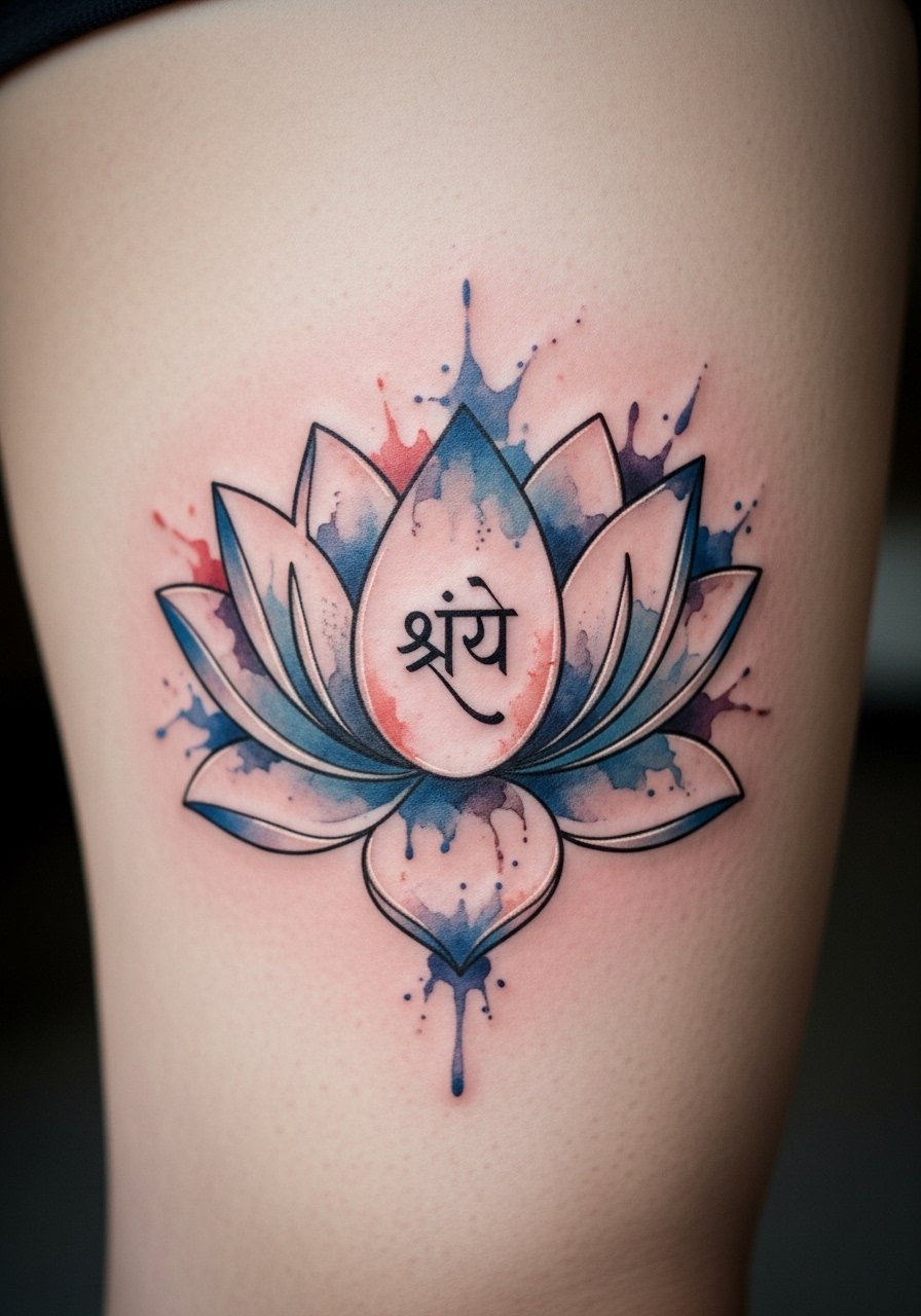 8. Watercolor Lotus With "श्री" Thigh