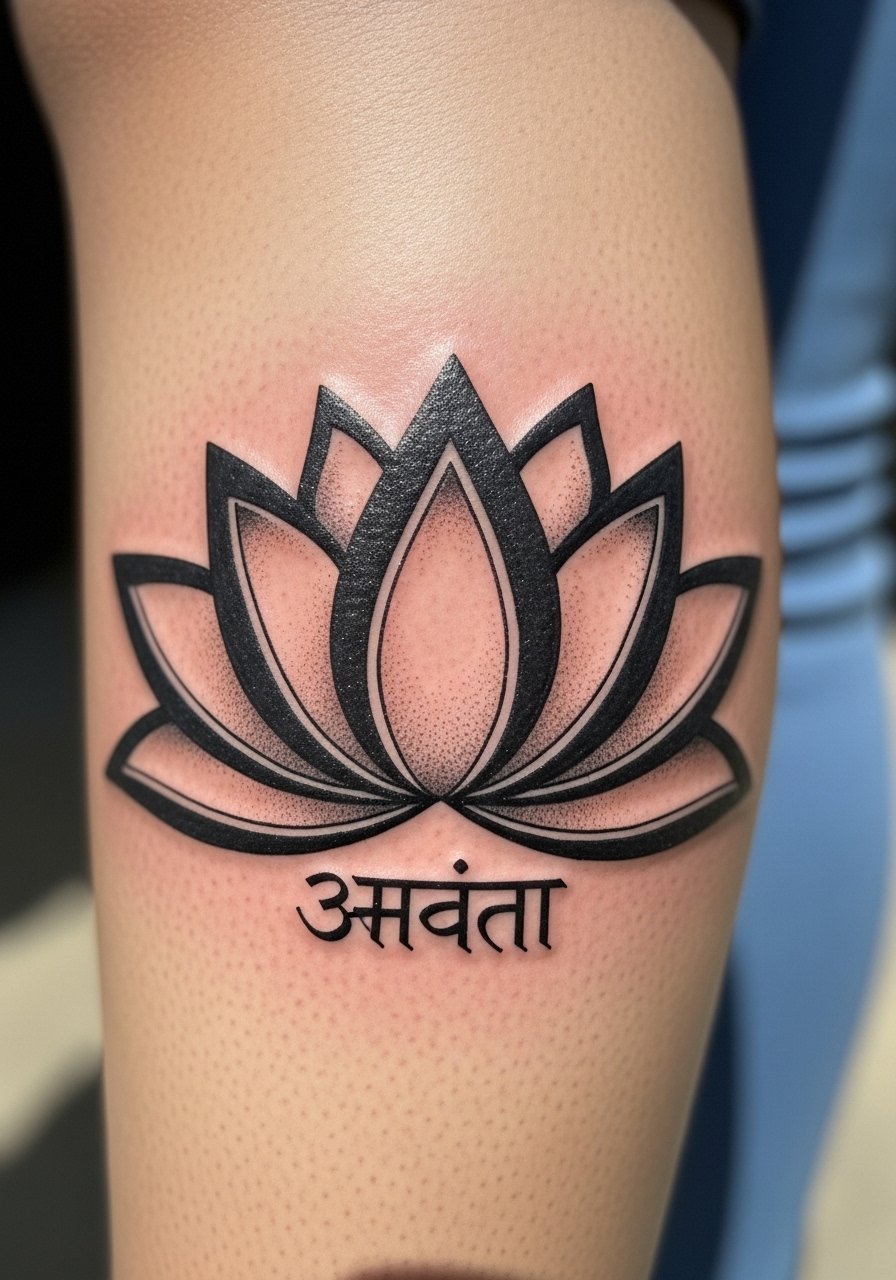 11. Blackwork Lotus With "अनन्त" Calf