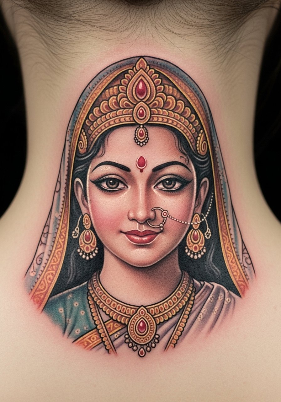 There is a delicate quality to a deity portrait at the nape. The area is small, so pick an artist experienced in facial micro-realism. Pain is moderate and sessions can stretch depending on detail. From my experience, high-contrast highlights are what keep facial features readable over time. People who skip subtle highlights end up with flattened faces after a couple of years. Ask to see healed realist portraits on similar skin tones before you commit.