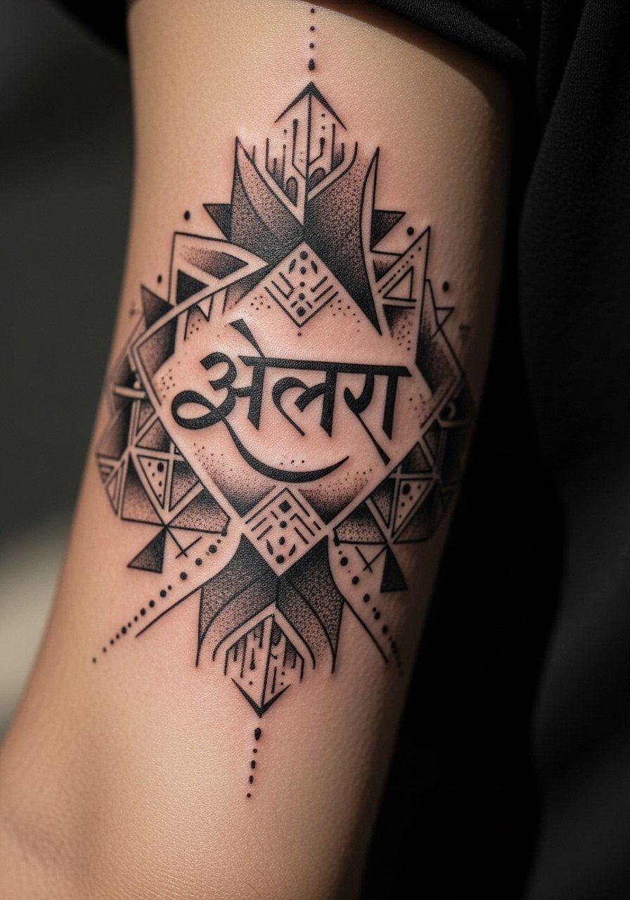 The upper forearm is forgiving. I found that geometric patterns anchor script well there. Ask the artist to place script in negative space, not layered over dense linework. From what I’ve seen, letters that sit on clear backgrounds keep their meaning through time. A mistake I see is stacking heavy geometry over thin script. The script disappears as the background saturates. Keep contrast high and spacing clear.
