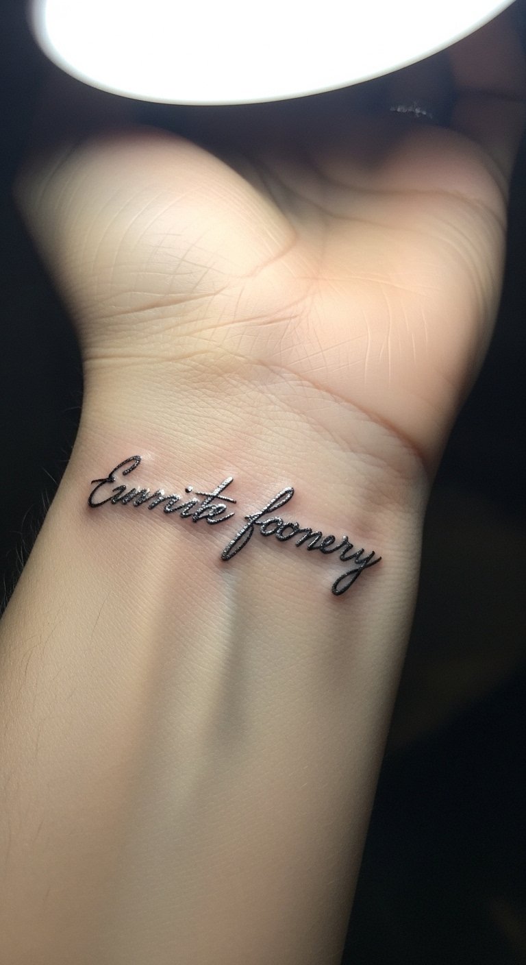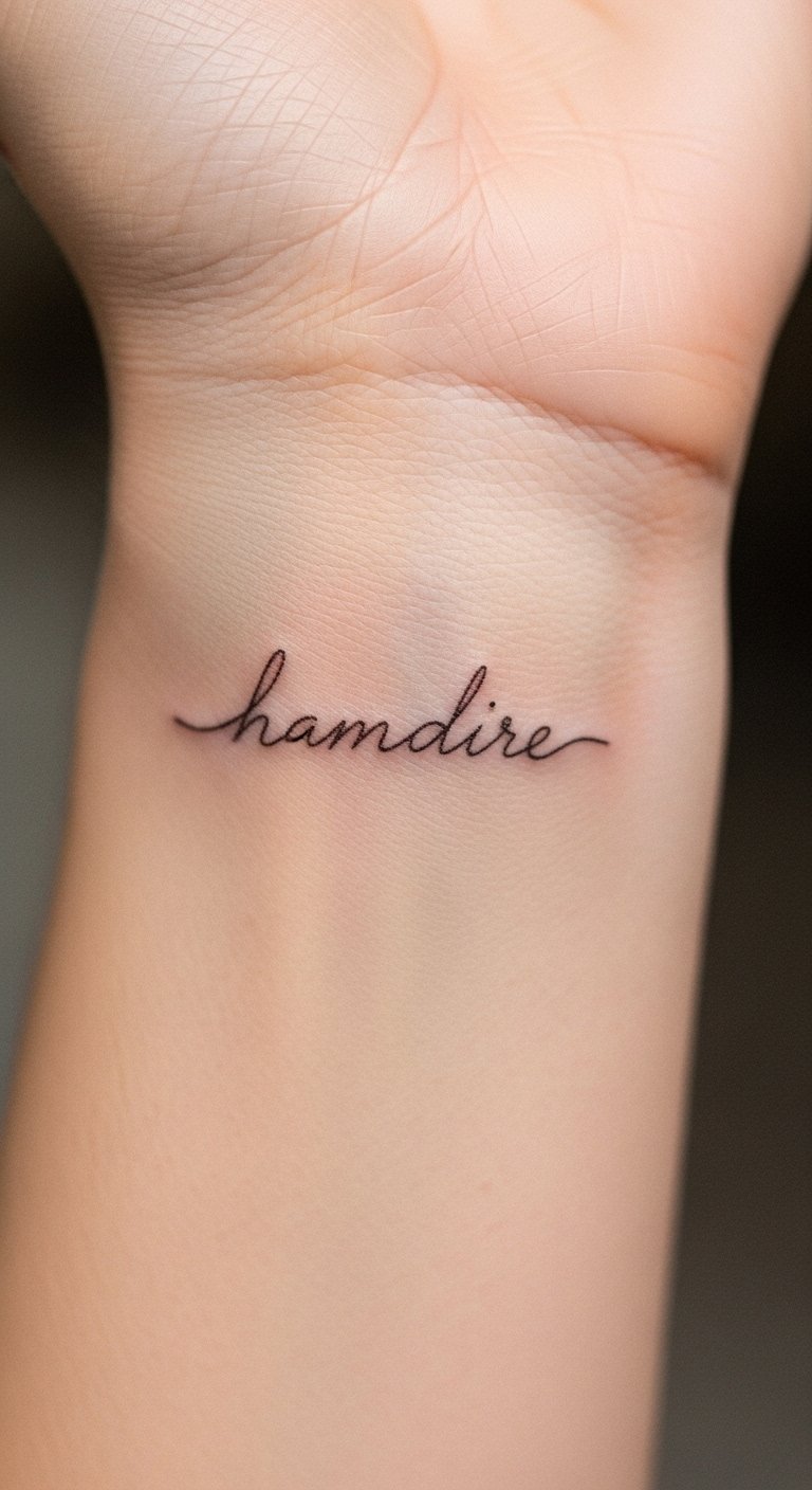 I loved this for my first piece. Fine-line script reads intimate on the inner wrist. It feels delicate but needs expert work—ask for slightly thicker hairlines where skin stretches. Expect mild soreness and quick surface healing in 1–2 weeks. Avoid tiny fonts; healed lines can blur if letters are too thin. Use fragrance-free lotion while healing and daily SPF once healed. This style reads timeless and minimalist.