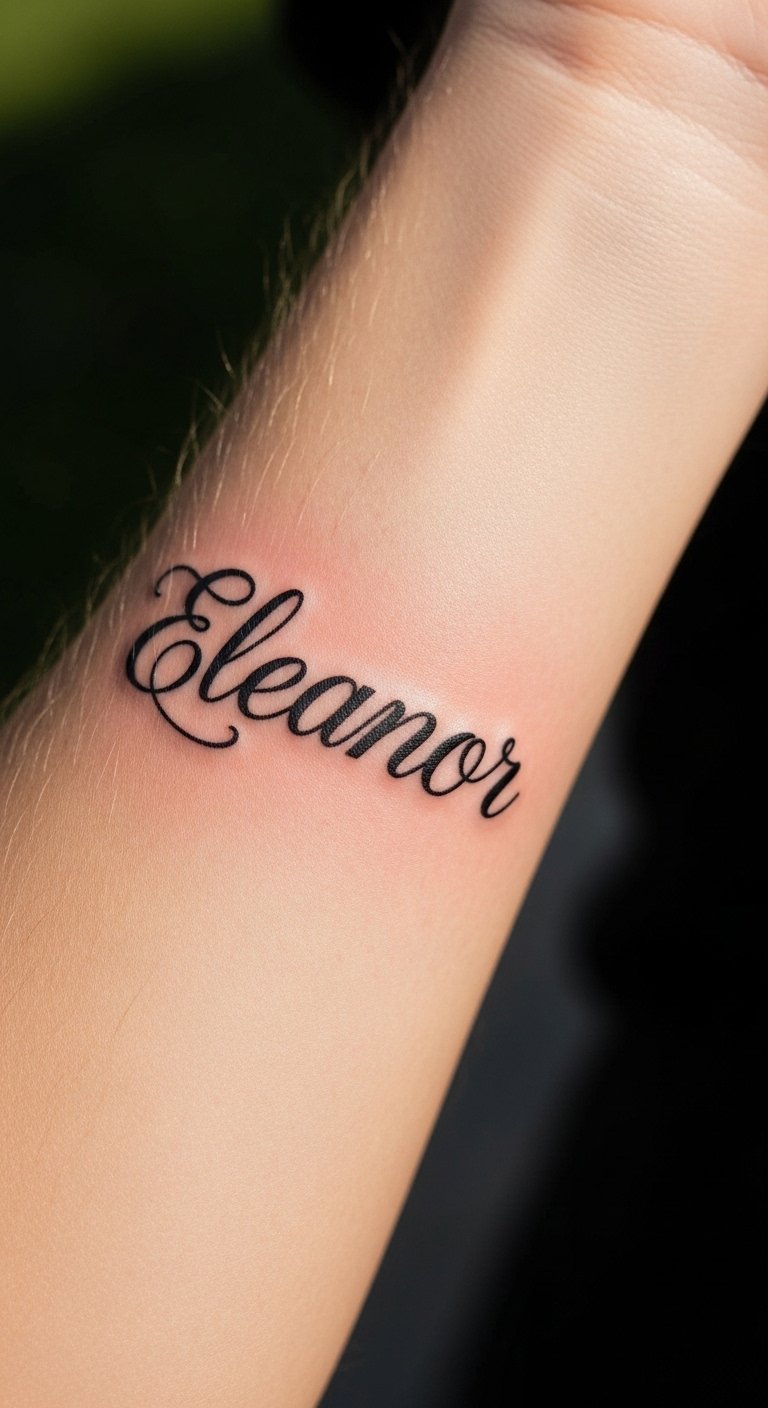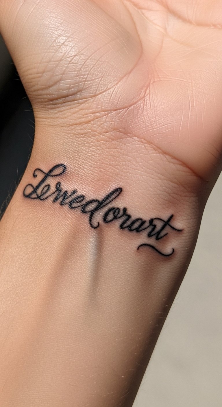 The inner forearm is forgiving for script. Pain is lower and healing is straightforward. Classic readable lettering ages well if letters have solid stems. Avoid overly ornate flourishes that can merge in 1–2 years. I found this placement great for showing friends and for frequent reading. Moisturize and use SPF to preserve contrast.