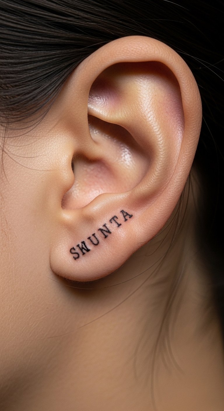 Behind-ear script is discreet and intimate. It can sting due to thin skin but heals quickly. Tiny letters are tempting but risk blurring—stick to short words and thicker lines. This is a good test for tolerating needle buzz and a subtle way to wear meaningful text. Keep hair and sweat away while it closes.