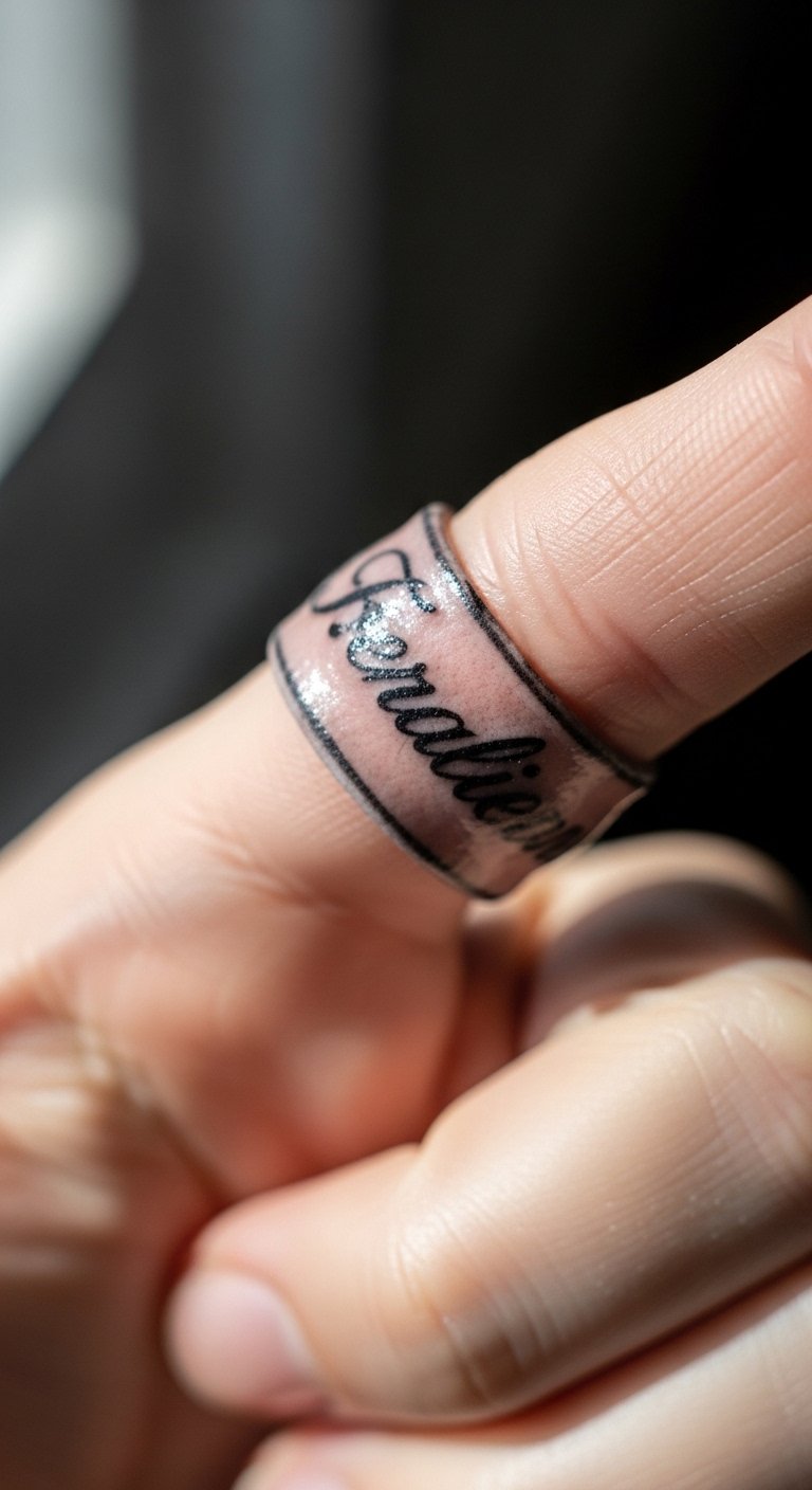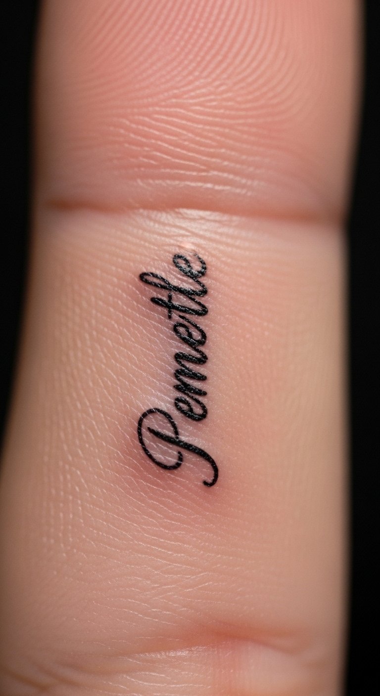 Finger script looks delicate but ages fastest. Hands get lots of sun and washing, so letters can blur. If you want this, choose bold, simple lettering and accept possible touch-ups later. Pain is higher and healing slower due to movement. I only recommend short text—initials or a tiny word—and commitment to long-term maintenance.