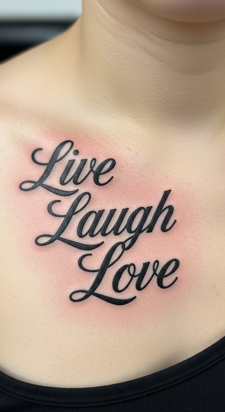 Sternum text looks dramatic but can be painful. Lines need weight to remain legible with movement and breathing. Expect recovery that limits upper-body strain for a few days. Choose clear lettering and give letters some space.