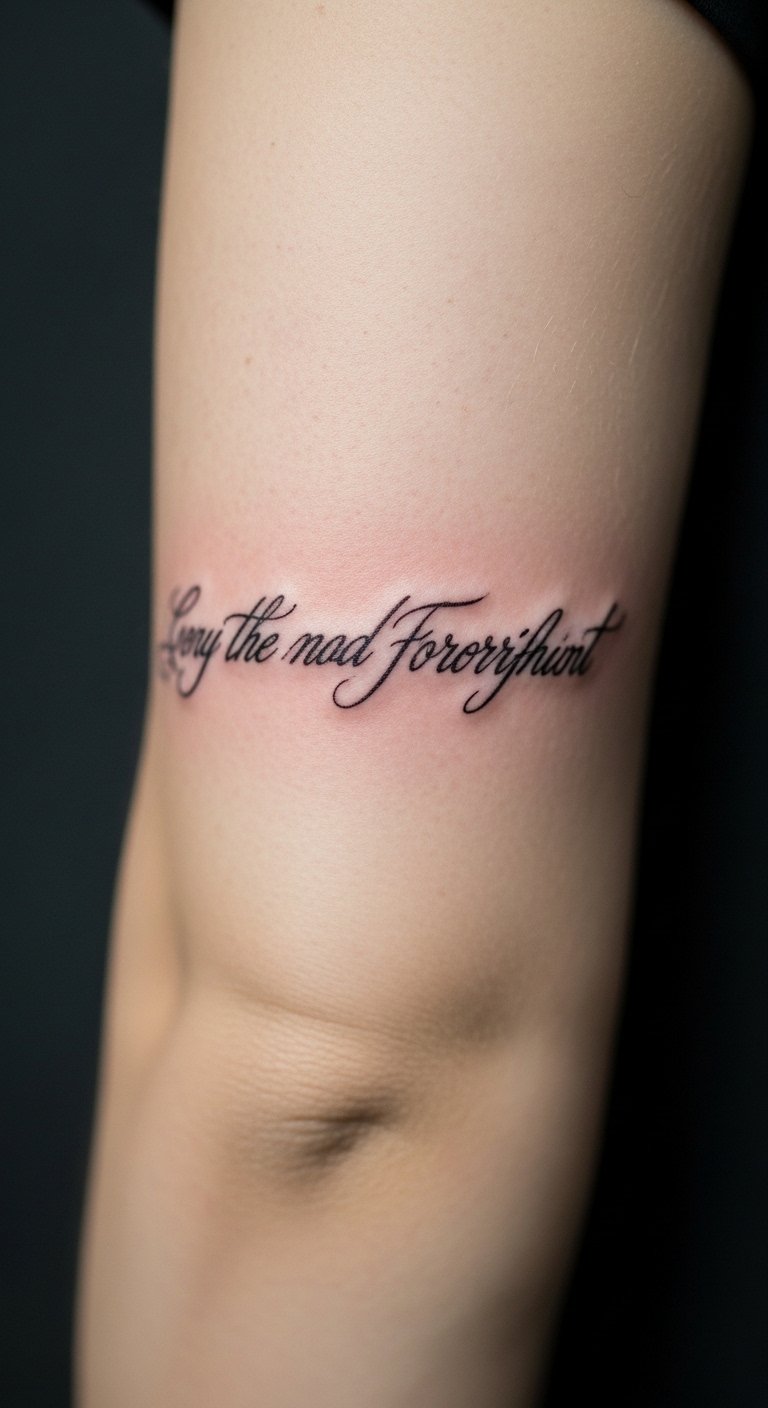 The outer thigh is forgiving and low-pain, great for longer quotes. Lines retain shape well because skin is stable here. Healing is easy if you avoid tight clothing. This placement is perfect for someone who wants a larger script hidden under shorts or skirts. Choose slightly heavier ink weight for lasting readability.