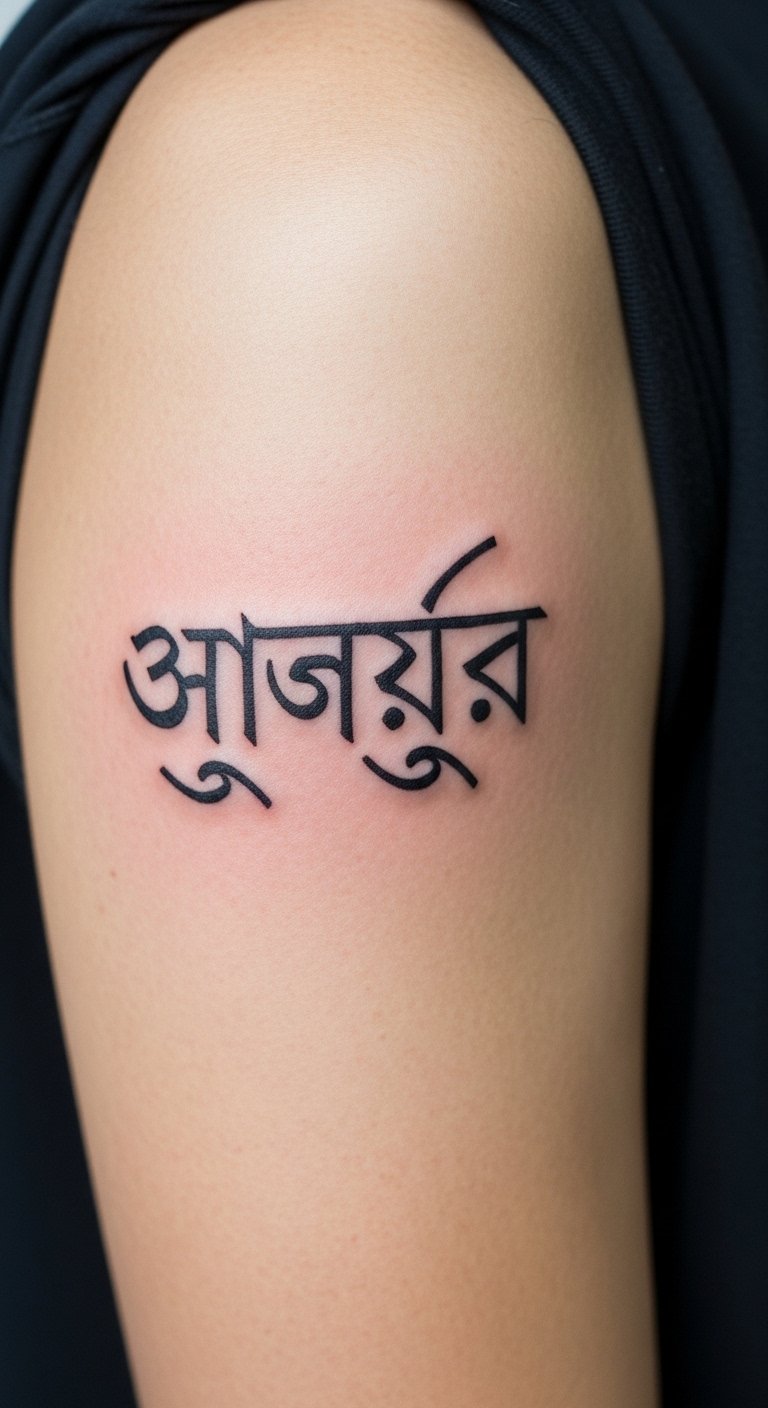 Using native or non-Latin scripts can carry deep meaning. Ensure accurate translation and an artist experienced in that script to preserve stroke order and balance. Upper arm placement is forgiving. Healed examples are essential—characters read differently as they settle.