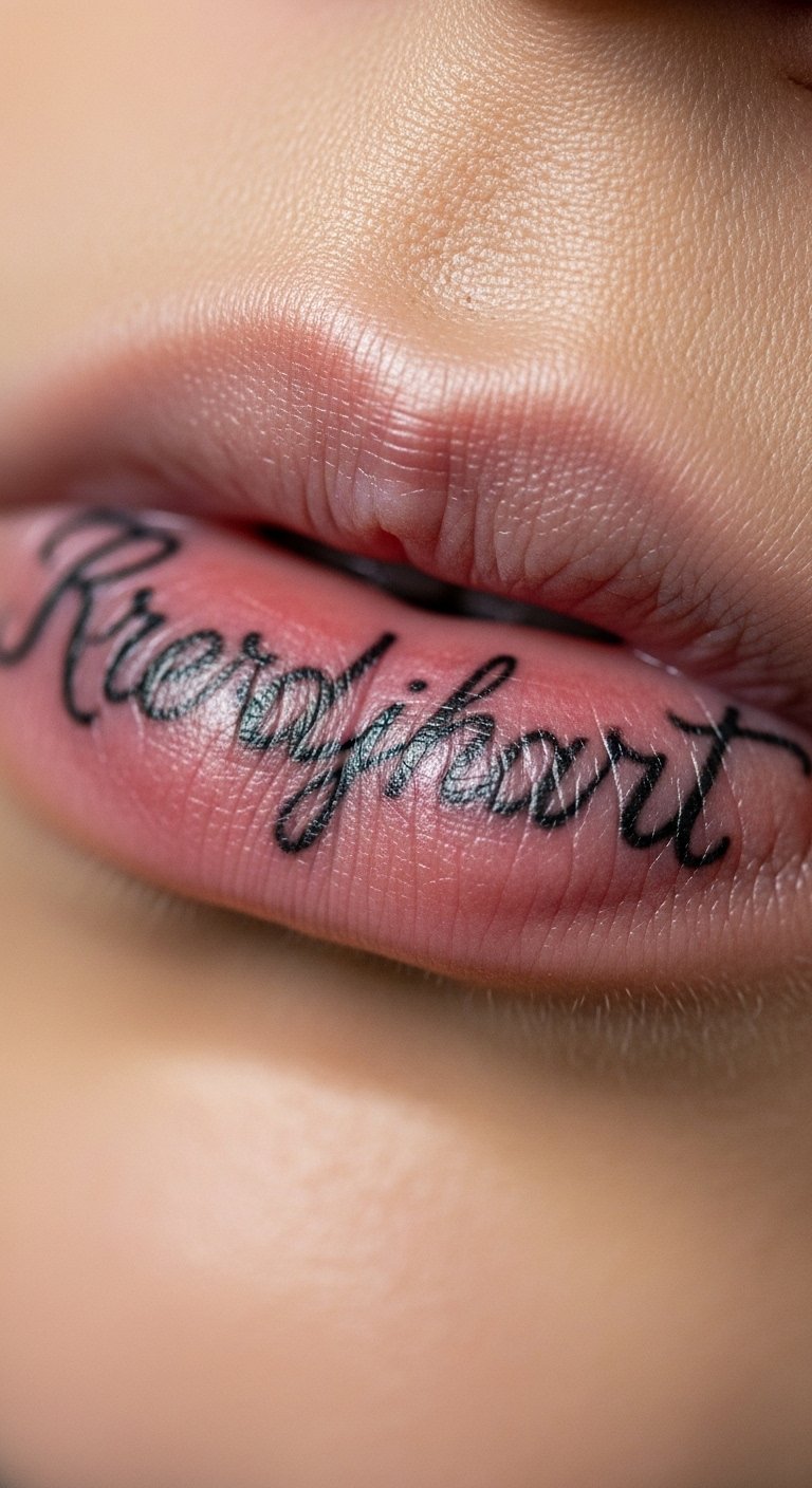 Inner-lip script is tiny and hidden but fades fast due to mucous membrane turnover. It’s often short-lived and may need touch-ups. Pain is sharp but quick. Consider it if you want a very private text and accept maintenance.