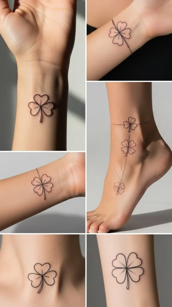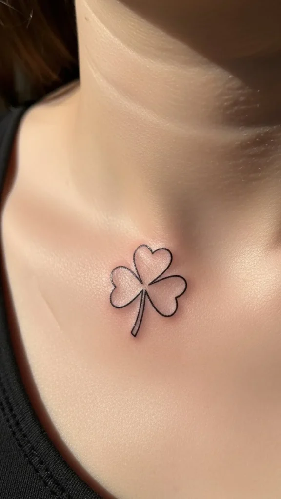 Collarbone shamrocks feel elegant and modern. Fine lines keep the look soft.