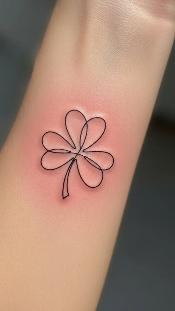 A single-line shamrock uses one flowing stroke to form the entire shape. That gives it a modern, artistic look without adding detail. Fewer passes mean less time in the chair.