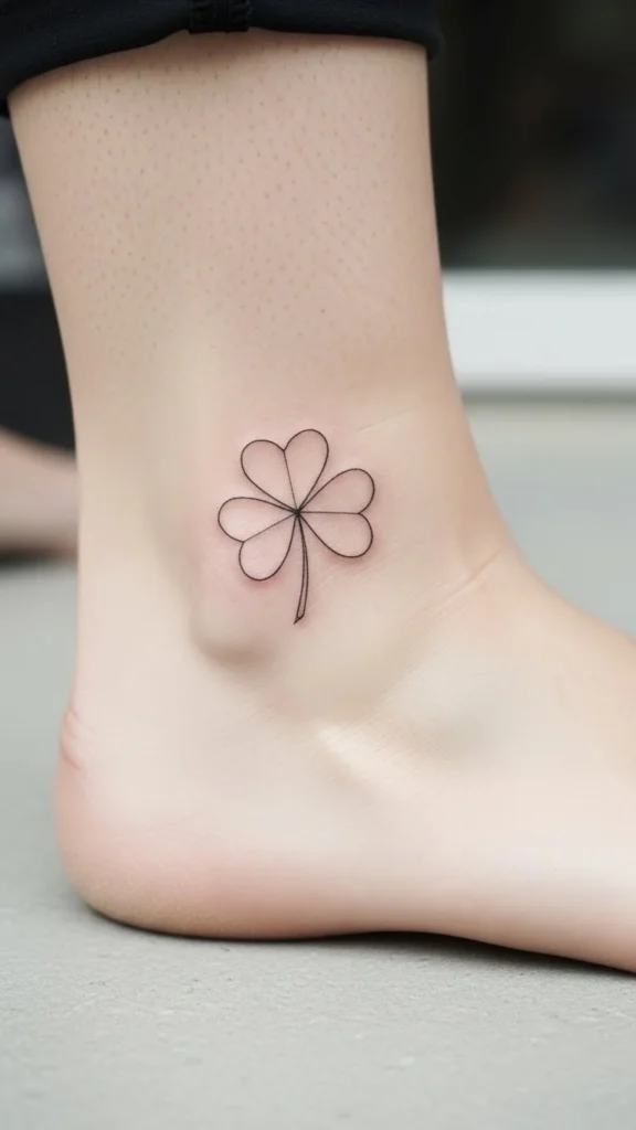 An ankle shamrock outline feels relaxed and easy to hide. Ultra-thin lines give it a clean finish.