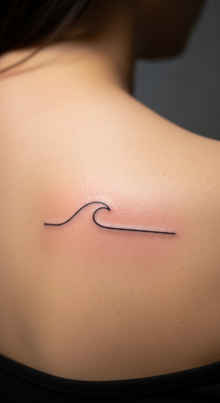 Minimalist Line Wave Across Shoulder Blade