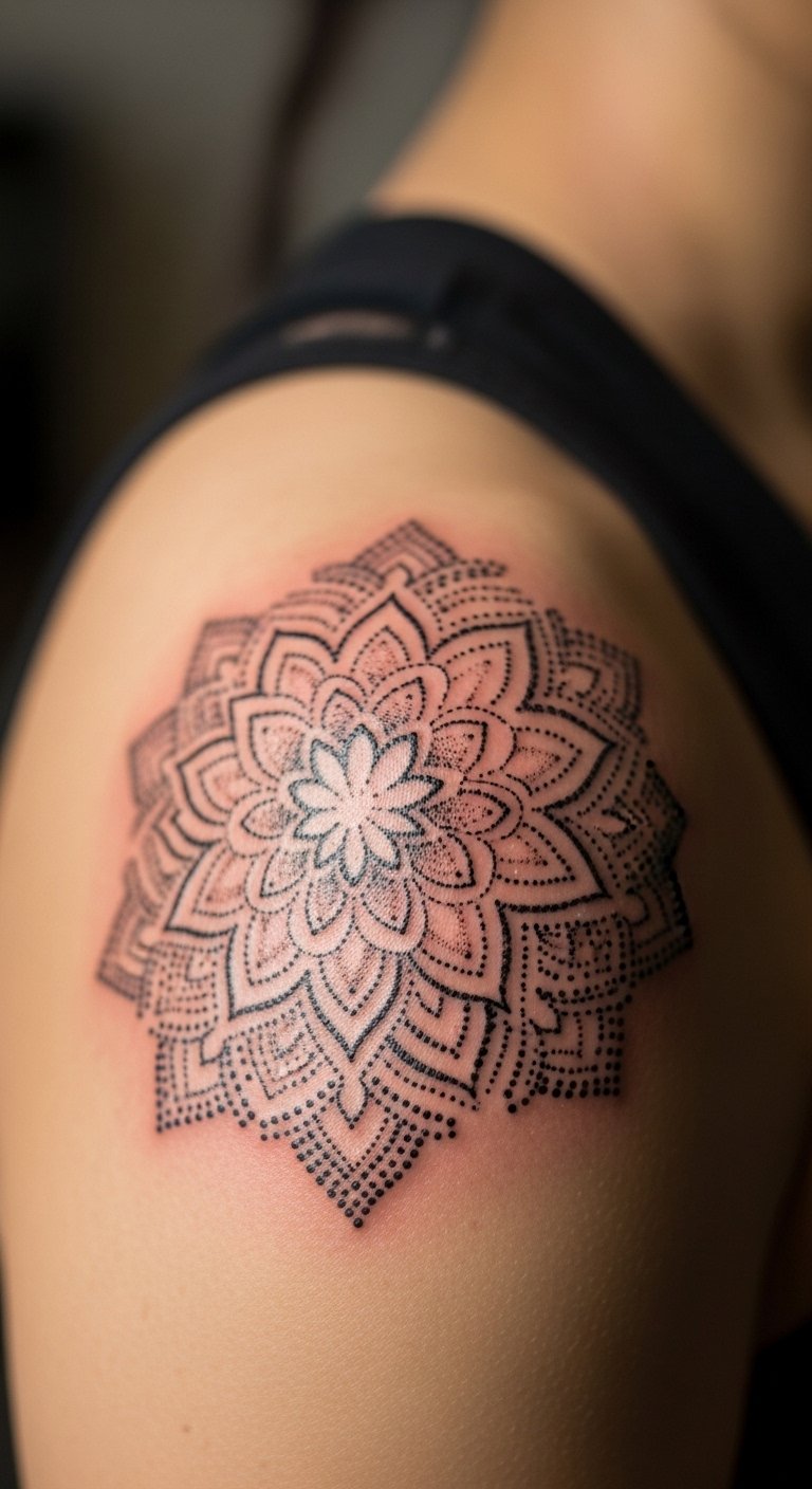 Dotwork Mandala Across Shoulder Cap