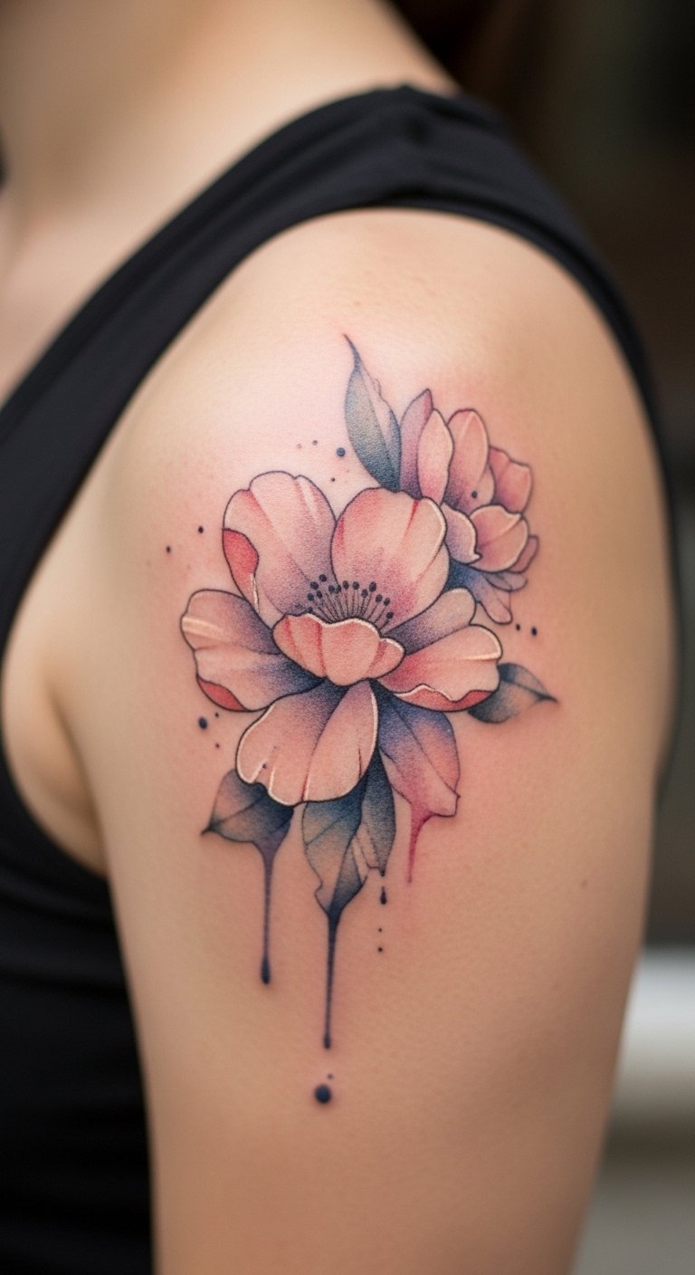 Watercolor looks fresh, but edges can blur as it heals. On the shoulder, it creates a soft, natural flow. Pain is mild. Heals unevenly if ink is too light—ask the artist about pigment saturation and long-term maintenance. Sunscreen is essential to keep colors lively.