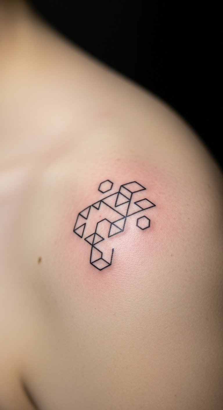 Minimalist lines feel modern and elegant on the upper shoulder or blade. Pain is low. These heal fast but are vulnerable to blurring over years—best kept slightly bolder than you think. Common mistake: lines too thin for long-term visibility. Ask for slightly heavier ink placement and healed examples.
