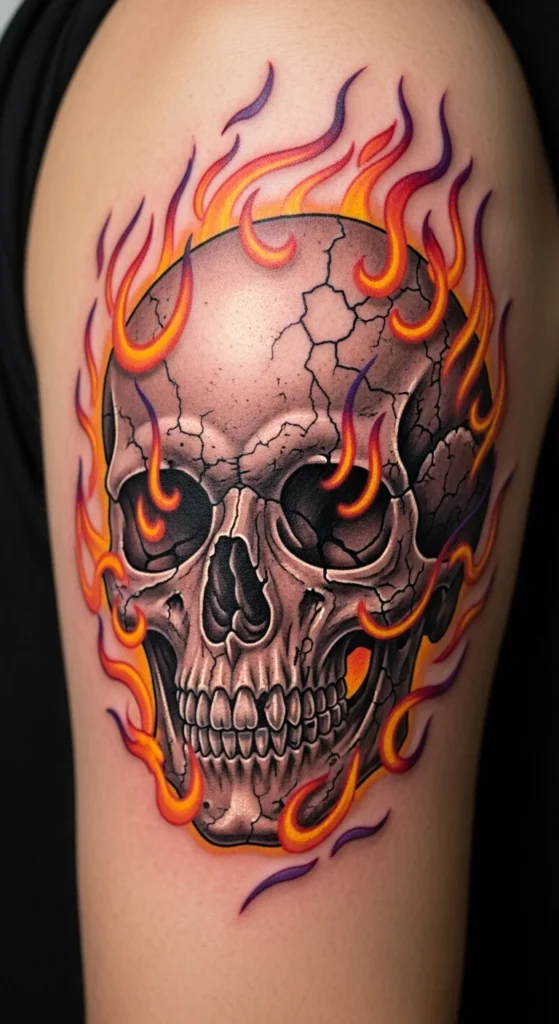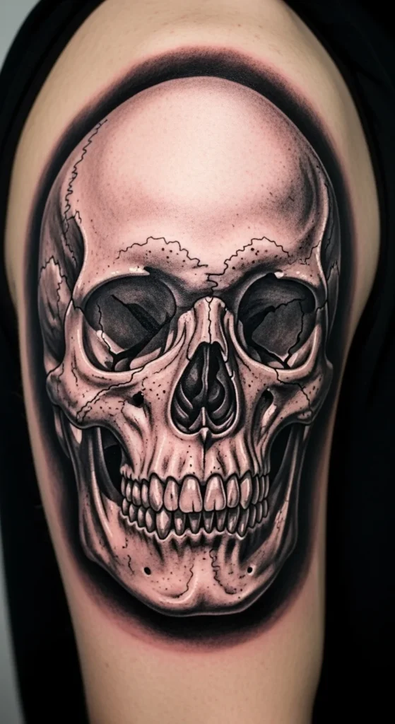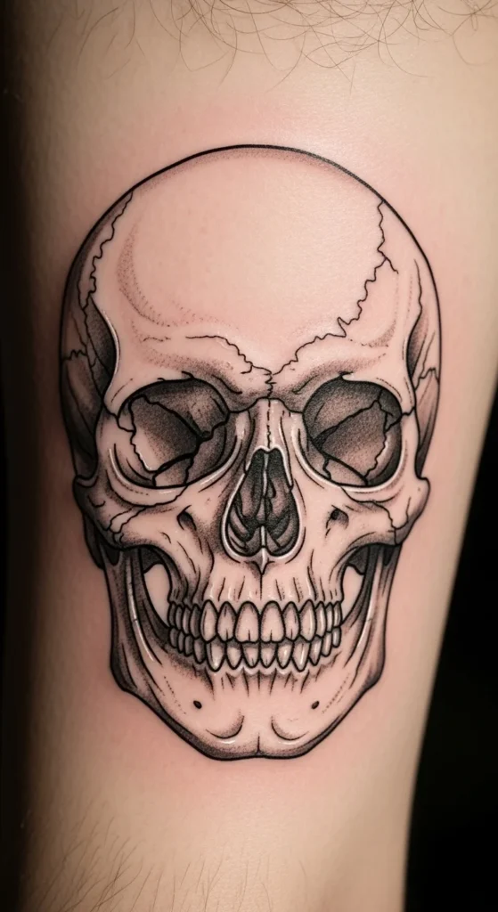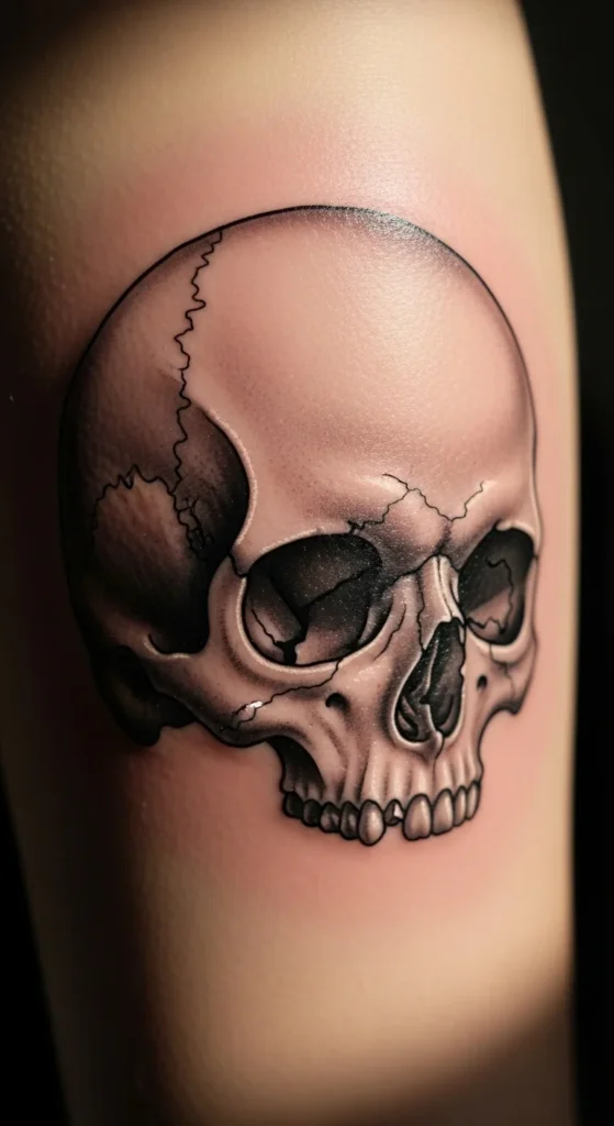 Realistic skull tattoos draw attention because of detailed shading. You can practice by studying reference photos and copying the light positions. This style usually fits best on larger areas like the upper arm or back. To keep things manageable, choose a medium size instead of a large panel. Practice shading using soft graphite before sharing the concept with an artist. You can also add gentle cracks or subtle shadows without making the tattoo too dark.